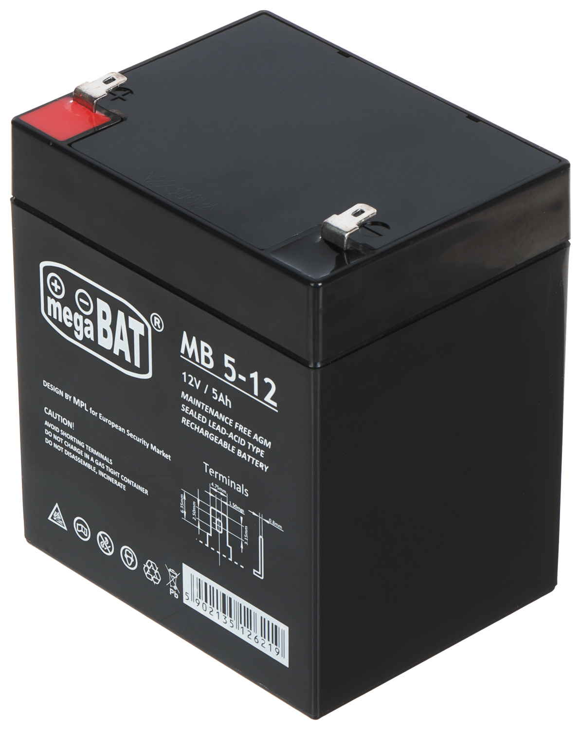 Battery capacity: 5.0 Ah </span>;>Rated voltage: 12 V </span>;>Battery type: AGM (Absorbent Glass Mat) maintenance-free batteries </span>;>Battery life: 3 … 5 years </span>;