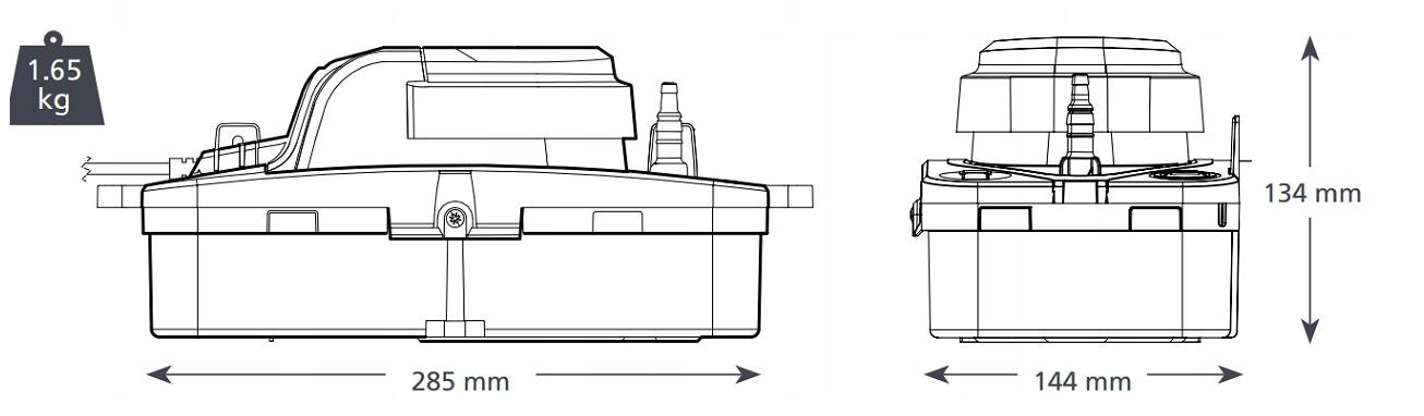 - Pump dimensions:augstums 134 mm / platums 144 mm / garums 285 mm
