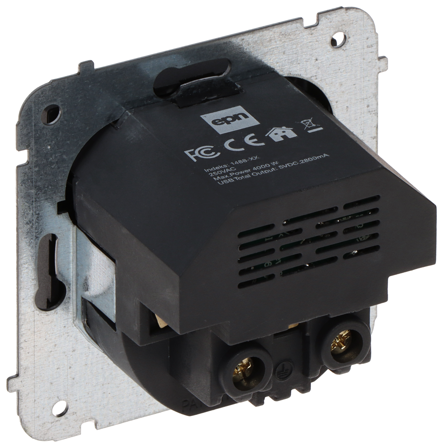 Rated voltage: 230V / 50Hz </span>;>Maximum load current: 16 A </span>;>Grounding</span>;>Barošana USB: 2 x 5 V DC / 2.1 A </span>;>Cable terminals: screw plate </span>;>Socket type: CEE 7/5 </span>;>Colour: Black </span>;