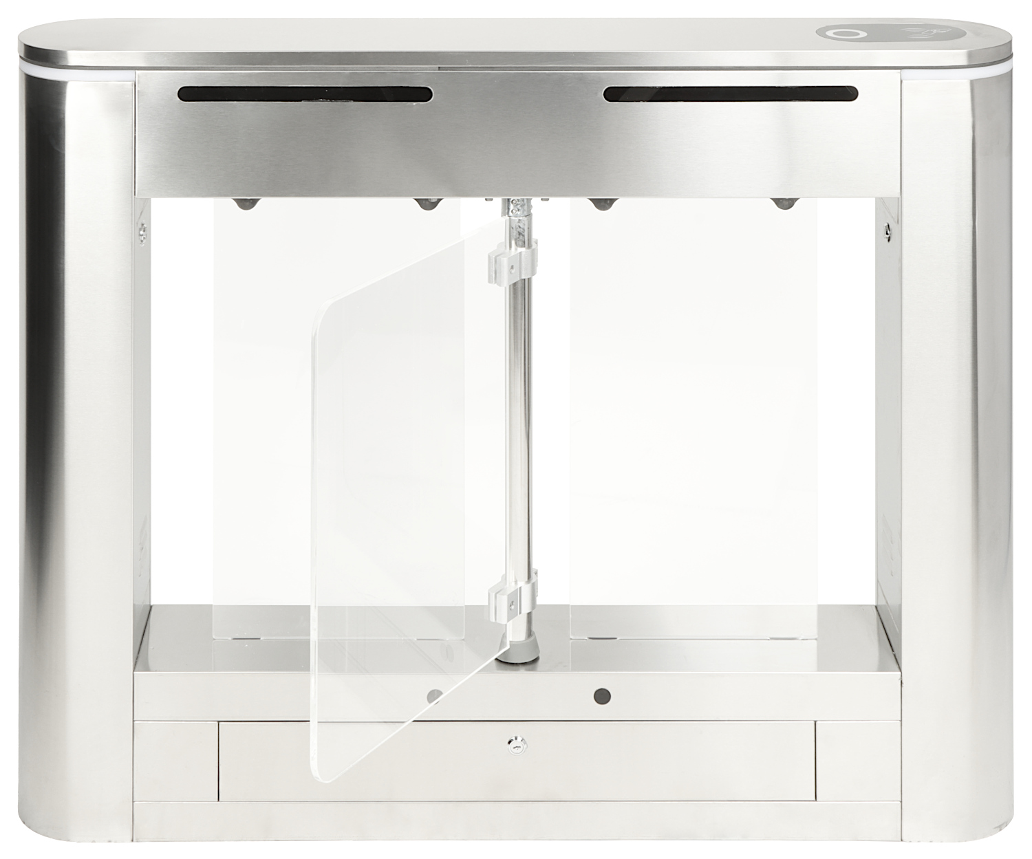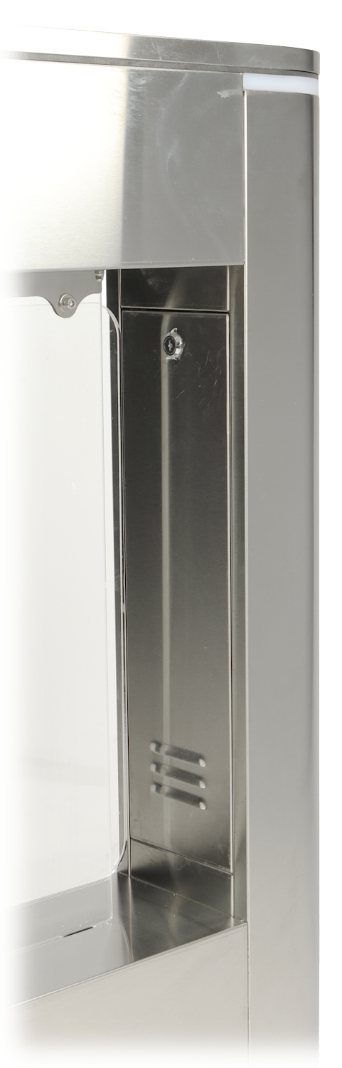 Šķērsošanas režīms vienā vai abos virzienos Turnikets paliek atvērts pēc strāvas padeves pārtraukuma Sprieguma kontroles iespēja vai izmantojot RS-485 saskarni Aizsardzība pret ejošas personas iesprostošanu (4 fotoelementi + spēka aizsardzība) Nerūsējoša tērauda korpuss Turniketa vērtnes un papildus barjeras izgatavotas no akrila stikla (plexiglas) Paredzētās vietas kodu slēdzeņu vai RFID lasītāju uzstādīšanai |