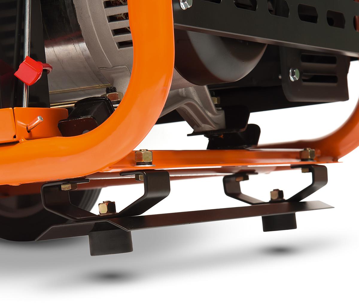 - The transport kit included with the generator makes it easier to move the device and significantly reduces the level of vibration during operation. It consists of: rubber wheels (2 pcs.), stands (2 pcs.) and foldable rubber handles (2 pcs.).