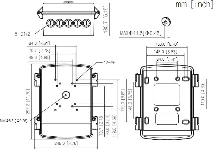 297,2 mm × 248,0 mm × 130,7 mm (11,70″ × 9,76″ × 5,15″) (L. × W × H.) |