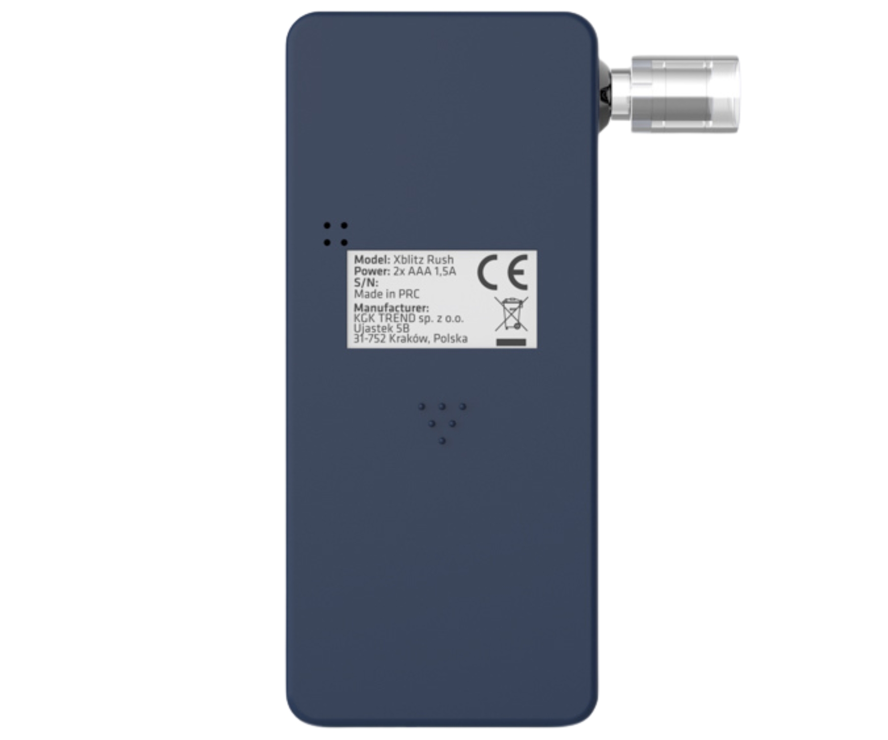 Sensor type: galvaniskā Measurement range: 2.000 mg/l BrAC, 4.000 ‰ BAC, 4.000 g/l BAC Selected characteristics: Bezmaksas kalibrēšana ražotāja servisa centrā vienu gadu no iegādes datuma., Saglabā līdz 99 mērījumu rezultātiem ierīces atmiņā, Iespēja konfigurēt pielāgotus trauksmes sliekšņus mērījumu rezultātiem, LED indikators, kas norāda, ka trauksmes slieksnis ir pārsniegts., Komplektā ir 5 maināmie iemutiņi Source of energy supply: 2 x Baterija 1.5V, tips AAA/LR03