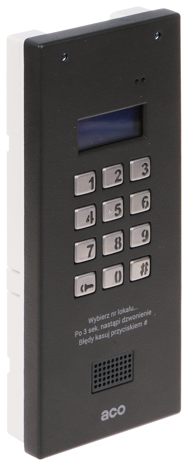 Compatibility: ACO CDN </span>;>Working mode: Master / Slave </span>;>Built-in proximity reader: Unique EM 125kHz </span>;>Number of subscriptions: 255 telpas </span>;>Display: LCD (heated) </span>;>Source of energy supply: 15 V DC / 400 mA vai 12 V AC ± 0.5 V </span>;>Protection class: IP42 </span>;>Mechanical strength: IK07 </span>;