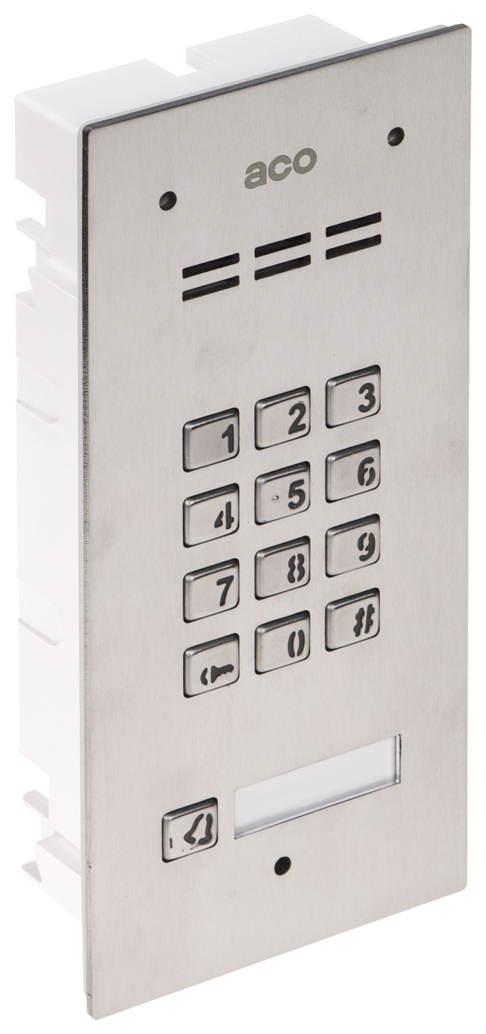 Compatibility: ACO COMO PRO </span>;>Mounting type: Installation in flush-mounted housings </span>;>Built-in proximity reader: Unique EM 125kHz </span>;>Number of subscriptions: 1 </span>;>Source of energy supply: 15 V DC / 400 mA </span>;>Housing: Stainless steel </span>;