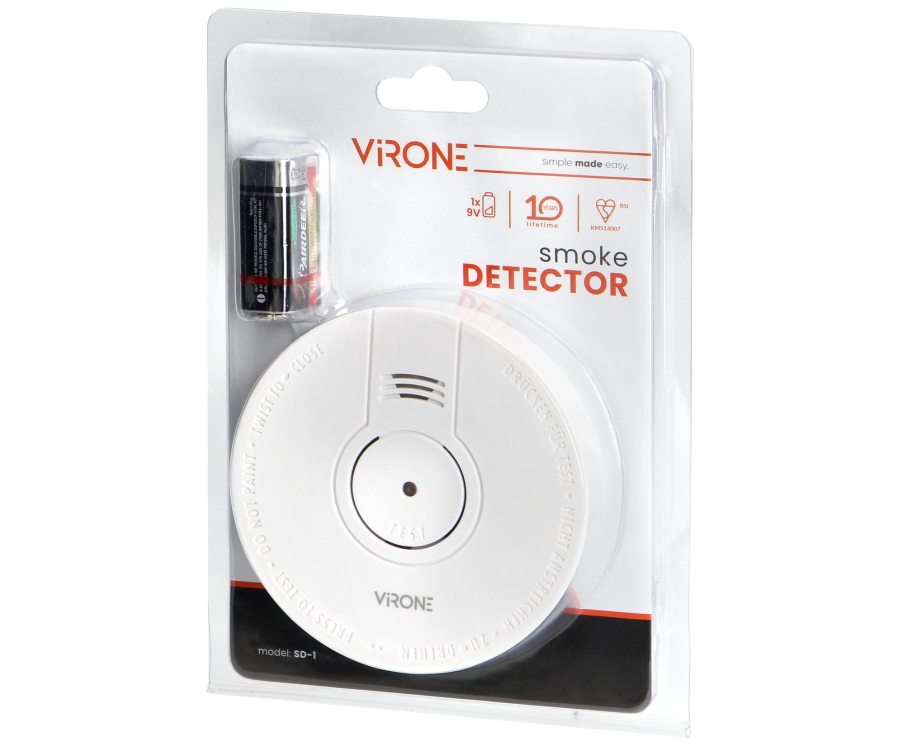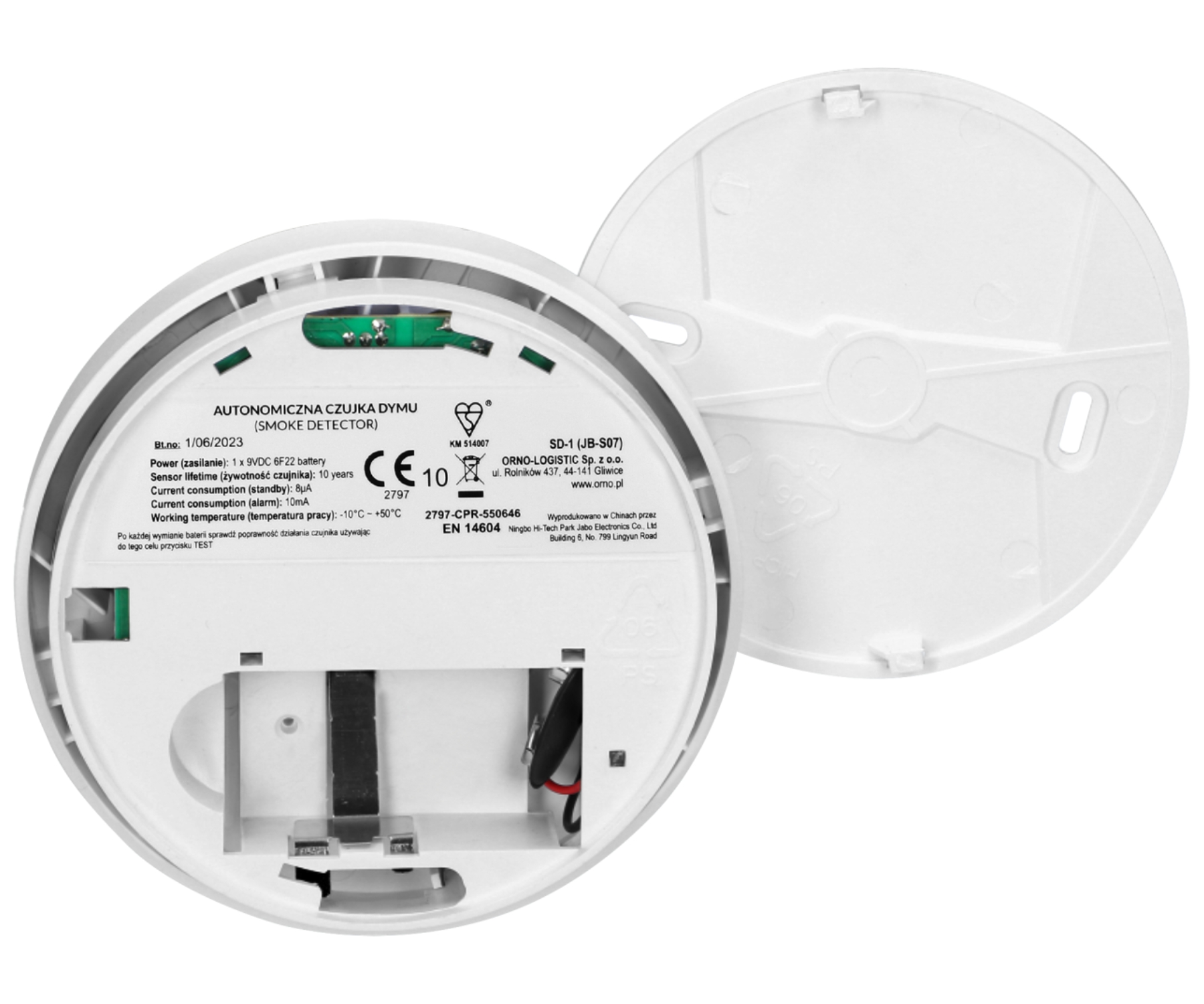 Detection: smoke Alarm: LED indicator acoustic (buzzer) Charging the batteries: Baterija 9V, tips 6LR61 Selected characteristics: Low battery level