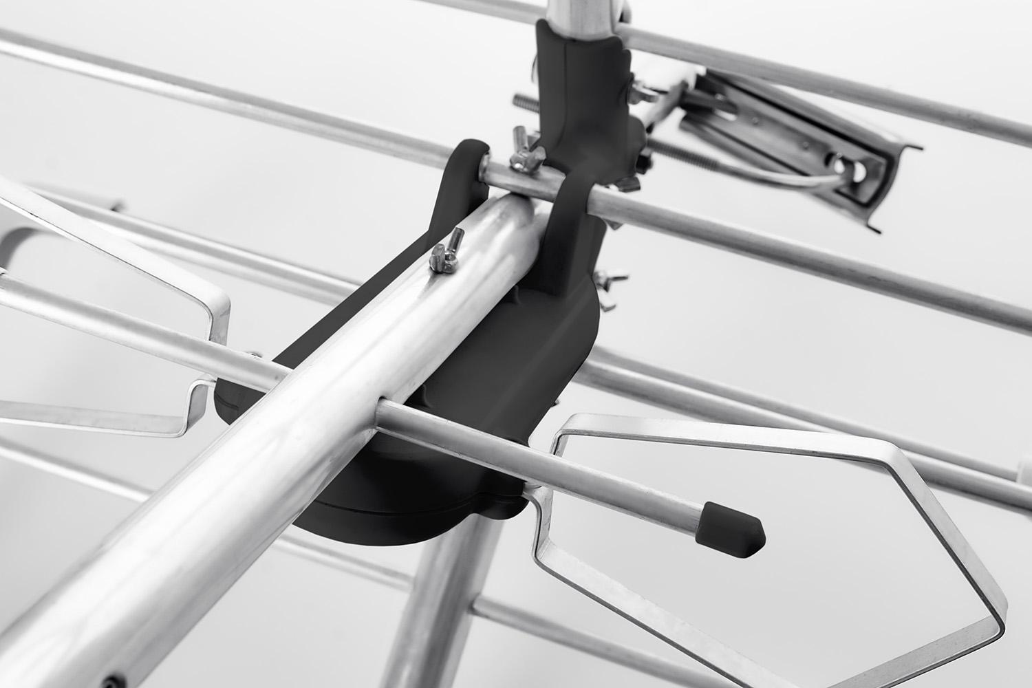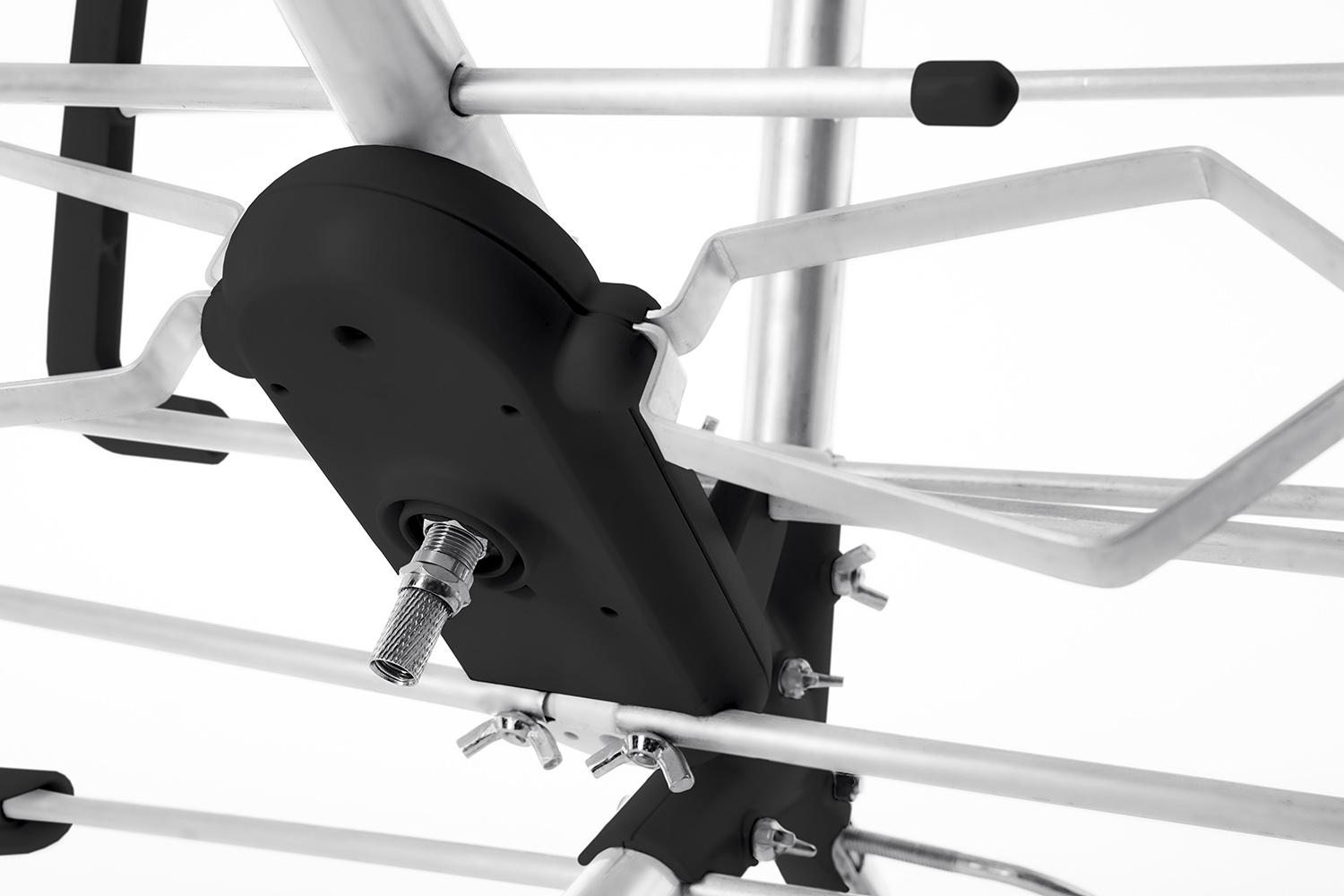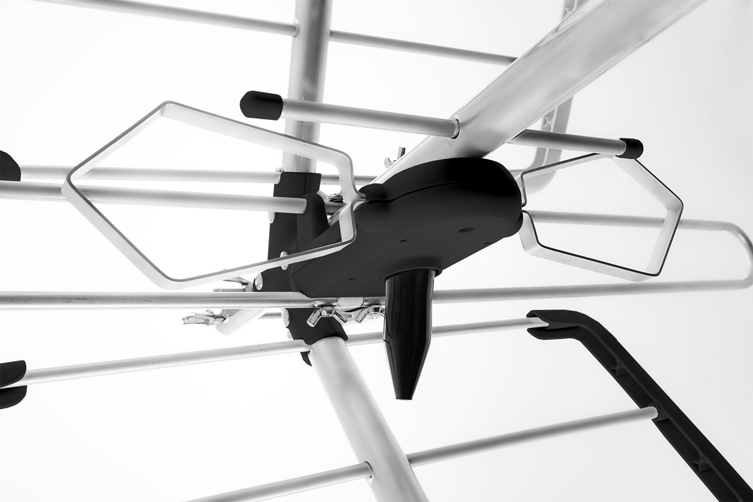 Trīszaru virziena antena, kas paredzēta ciparu, DVB-T un Ultra DVB-T un Ultra HDK signāla uztveršanai 4 HDK/T2 televīzijas kvalitātē.