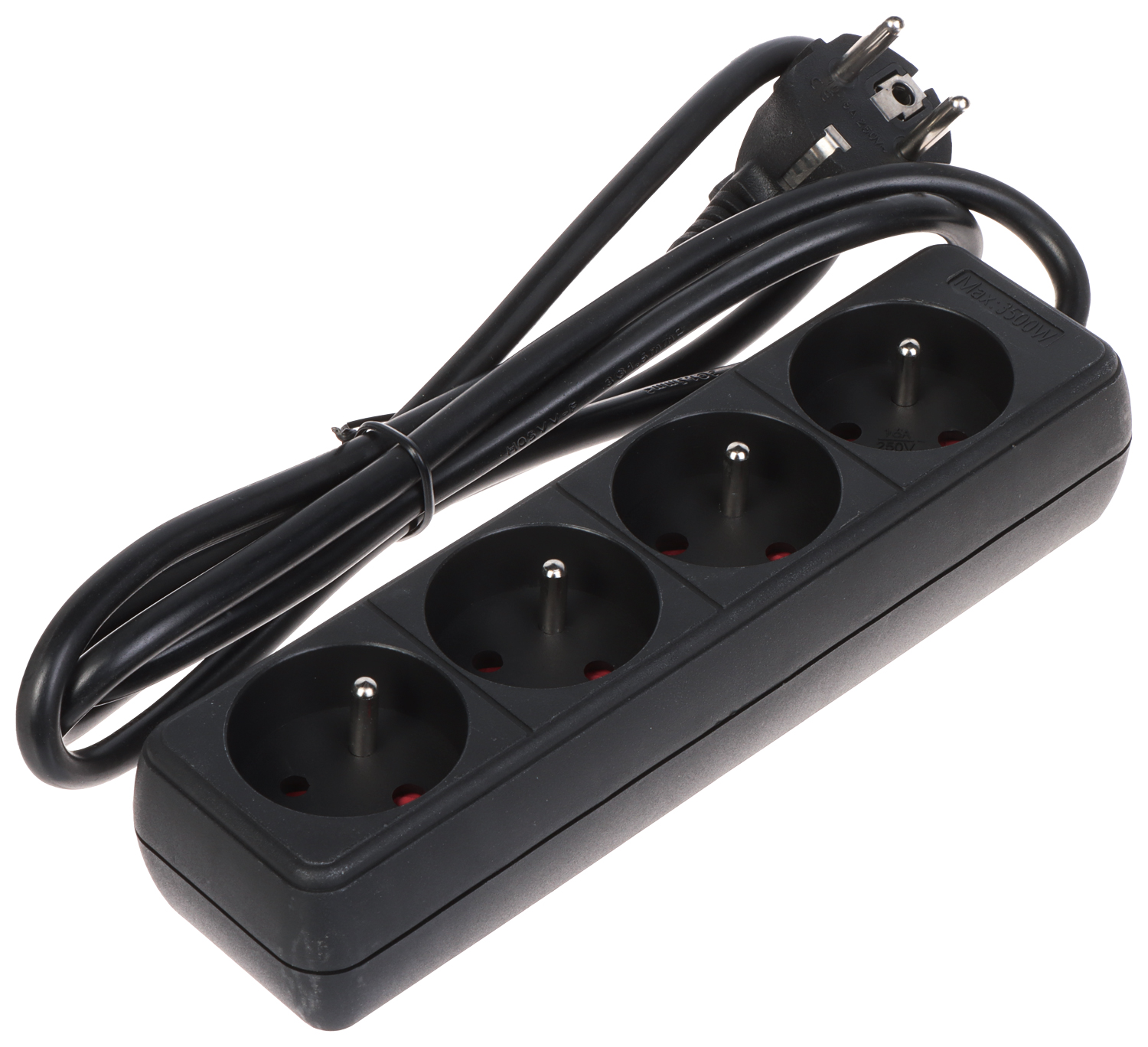 High-quality power extension cord with 1.3 m long cable; Maximum total load: 2500W </span>;>Number of output sockets: 4 sockets with 10A/250V CEE 7/5 safety plug </span>;>Colour: Black </span>;