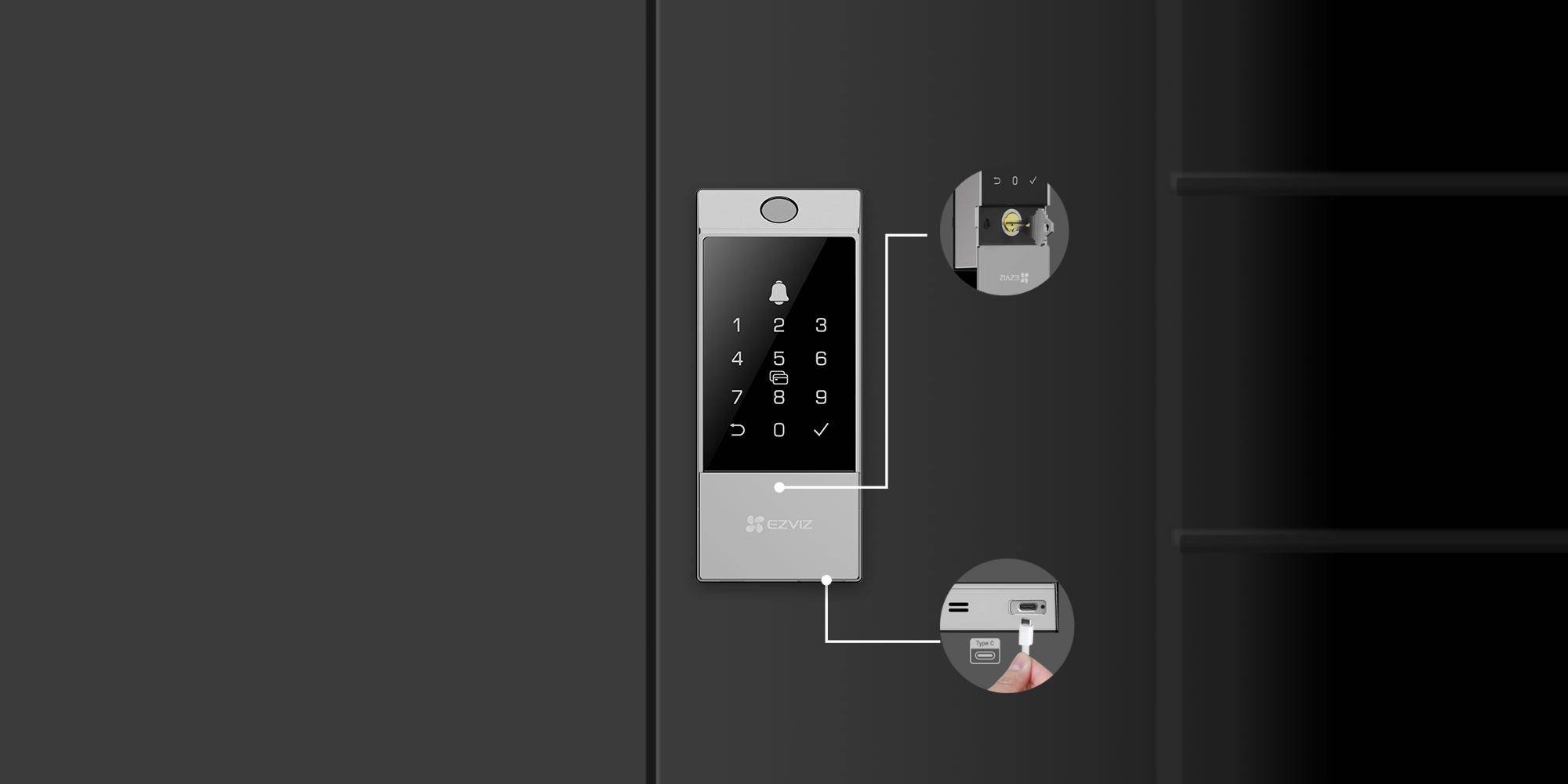 DL04 Pro darbojas ar nomaināmām baterijām, kas nodrošina ilgstošu ierīces darbību. Turklāt slēdzene atbalsta avārijas uzlādi, izmantojot ārējo akumulatoru. Jūs varat iekļūt mājā pat tad, ja baterijas ir pilnībā izlādējušās. Ārkārtējos gadījumos atslēgšanai var izmantot komplektā iekļauto mehānisko atslēgu.