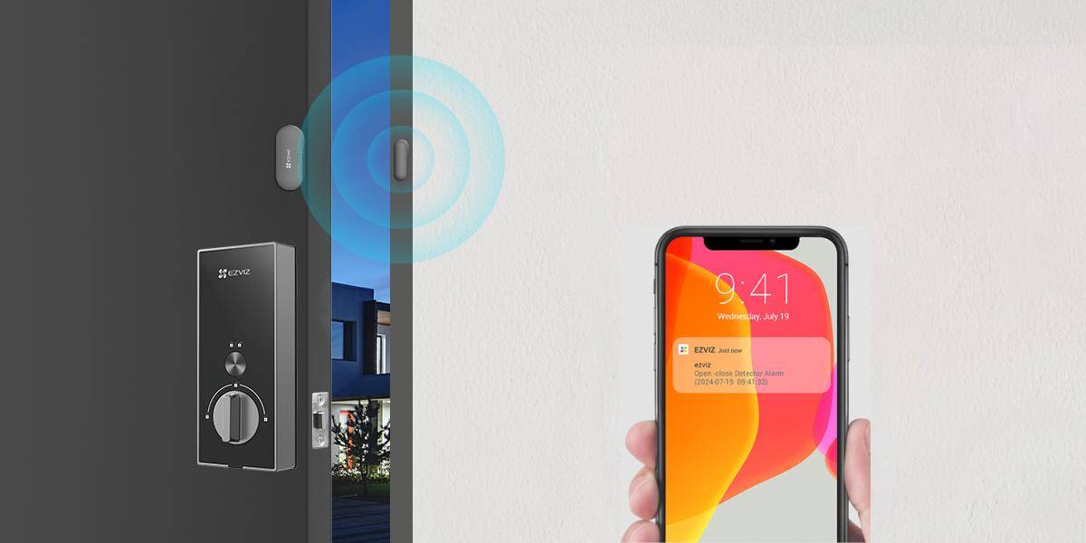 Neatceraties, vai aizvērāt durvis, izejot no mājas? Ar DL04 Pro slēdzeni un EZVIZ atvēršanas/aizvēršanas sensoru jums vairs nav jāatceras to darīt — abas ierīces darbojas kopā un nodrošina, ka durvis vienmēr ir aizvērtas.²