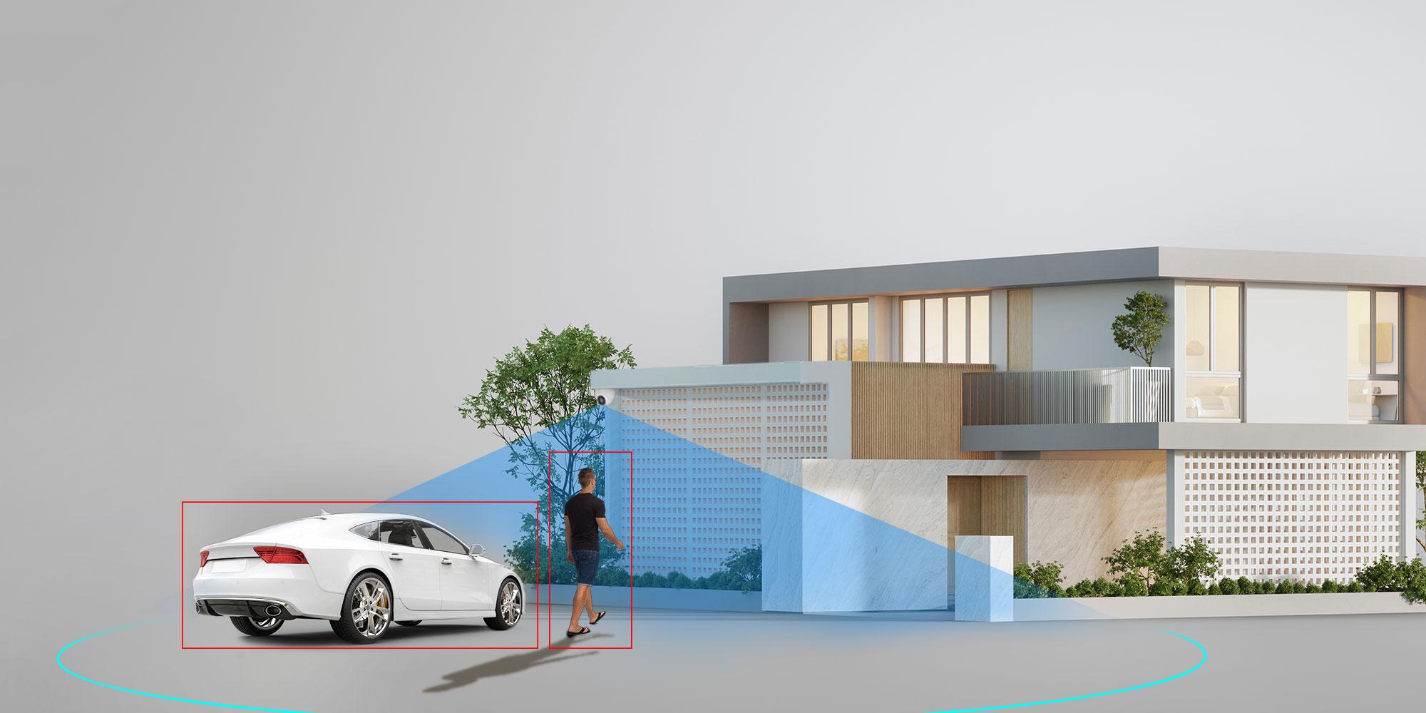 PoE power/link via a single cable and AI people/vehicle detection.