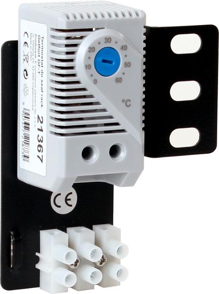 The thermostat is used to control the fan in the rack. It allows you to set a certain temperature inside the case and will control the fan on and off itself. This allows you to optimize the operating temperature and energy consumption of the devices, thus saving costs.