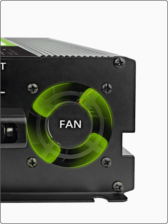 - In addition Green Cell invertors PowerInverter LCD 12V 2000W/4000W ir aprīkots ar virkni inteliģentu drošības sistēmu, kas pastāvīgi uzrauga tā darbību, nodrošinot drošu darbību. Tas nodrošina, ka pat neparedzētu situāciju, piemēram, īssavienojumu, zema sprieguma vai pārslodzes, gadījumā ierīce darbosies kā paredzēts, nodrošinot drošu darbību. Šajā invertorā izmantotā adaptīvā dzesēšana ļauj ventilatoriem darboties ar mainīgu ātrumu, pielāgojoties pašreizējai slodzei. Tas nodrošina atbilstošu dzesēšanu, efektīvi novēršot ierīces pārkaršanu un pagarinot tās kalpošanas laiku.