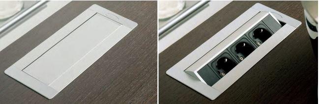 - Thanks to the flat edge (only 2 mm), the housing with sockets fits perfectly on the table surface and does not interfere with its cleaning.