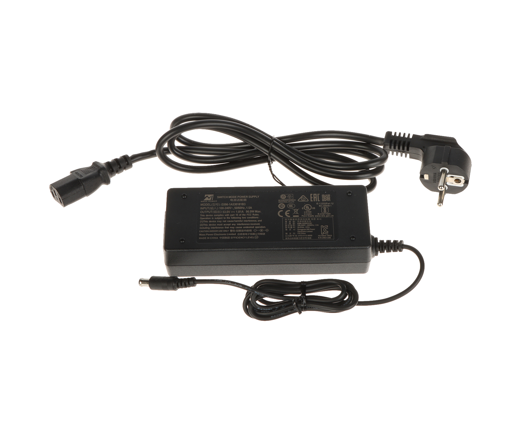 53 V DC / 1.81 A (power adapter included)
