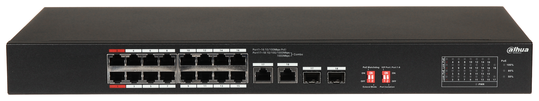 INDUSTRIĀLAIS PĀRSLĒGS POE S3218-16ET-135 16-PORTU SFP DAHUA