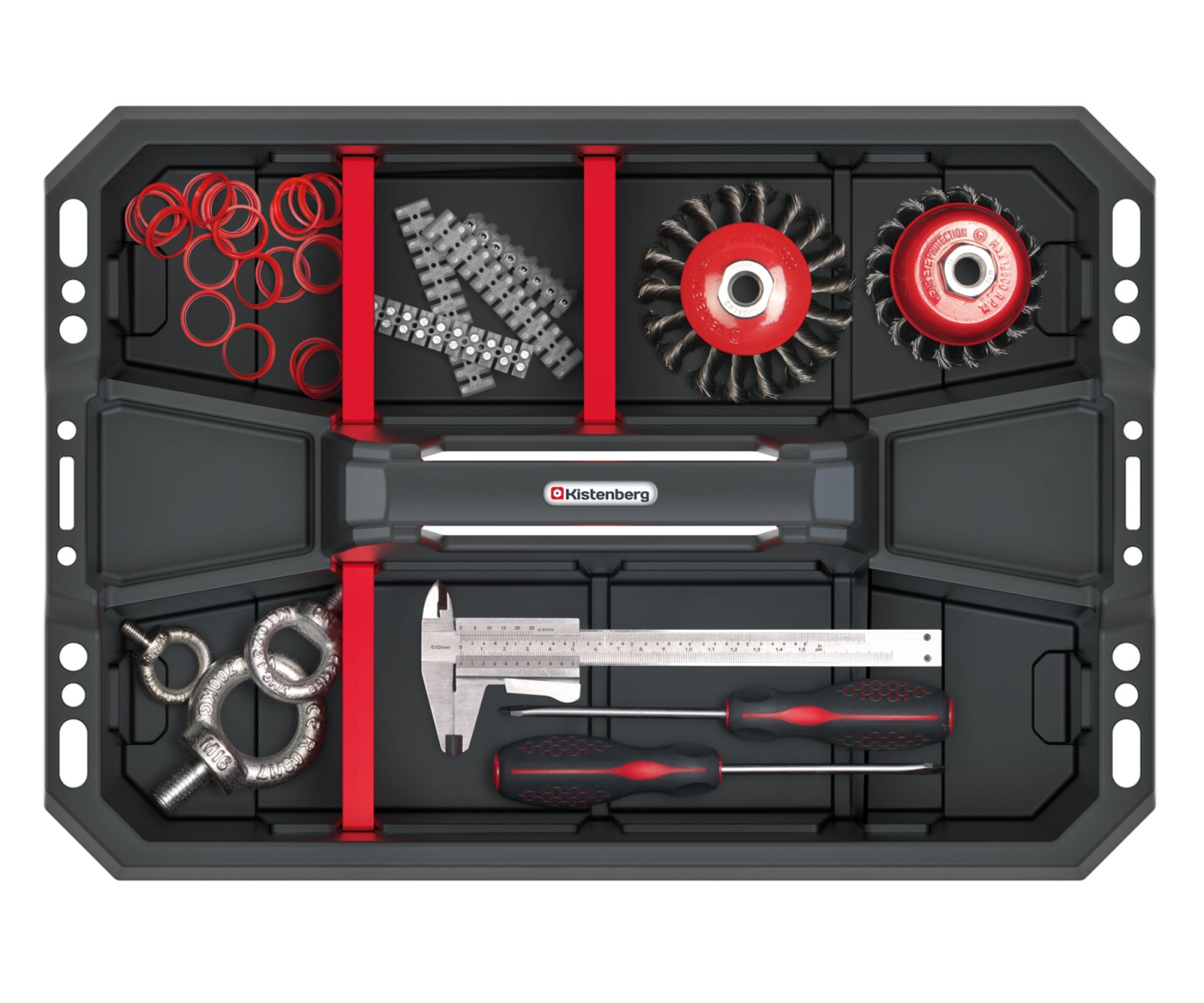 Material of manufacture: Plastics </span>;>Colour: Black / Red </span>;>Selected characteristics: Capacity: 20 kg, Heavy duty housing, 6 removable separators </span>;>External dimensions: 495 x 345 x 210 mm </span>;