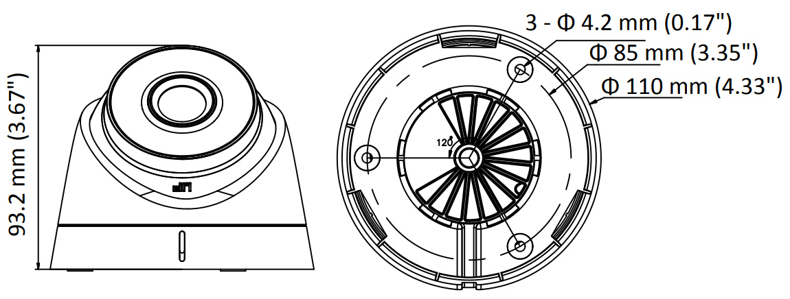 Sensors: 1/2.7" Progressive Scan CMOS </span>;>Matrix size: 2.1 Mpx </span>;>Resolution: 1920x1080 – 1080p </span>;>Viewing angle: 105 ° </span>;>Infrared illumination detection area: 30 m </span>;>Source of energy supply: PoE (802.3af), 12V DC </span>;>Protection class: IP67 </span>;