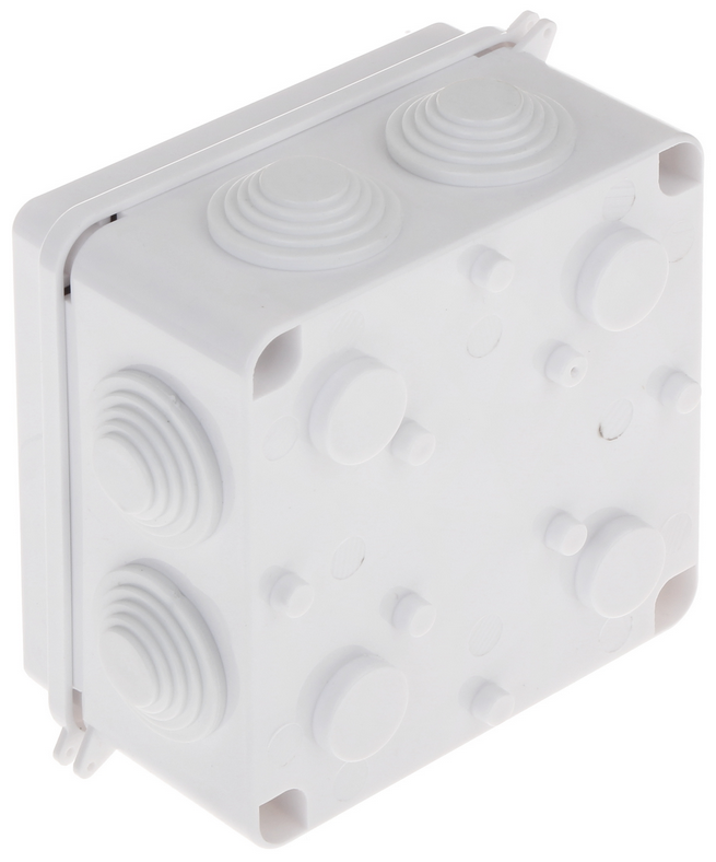 Virsmas montāžas, izolējoša, atzarojuma kārba, 7 ieejas ar bezvītnes kabeļu blīvslēgiem.