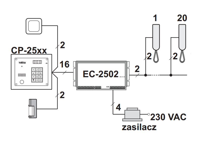 Ciparu domofons CD-2502 ir paredzēts daudzdzīvokļu blokiem ar vienas ieejas kāpņu telpām, vienas mājas īres mājām, daudzstāvu mājām utt galvenā ieeja (piem. vārti žogā) un ne vairāk kā 64 pakārtotas ieejas (daudzdzīvokļu māju, īres māju vienvirziena kāpnes.