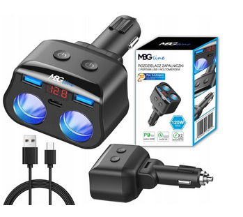 MODERNS SADALĪTĀJS 2x USB QC3.0 + 2x CIGAREŠU ŠĶILTAVU LIGZDA + 1x USB TYPE C PD 20W (maks. 120 W) + VOLTMETRS + USB-C KABELIS!
