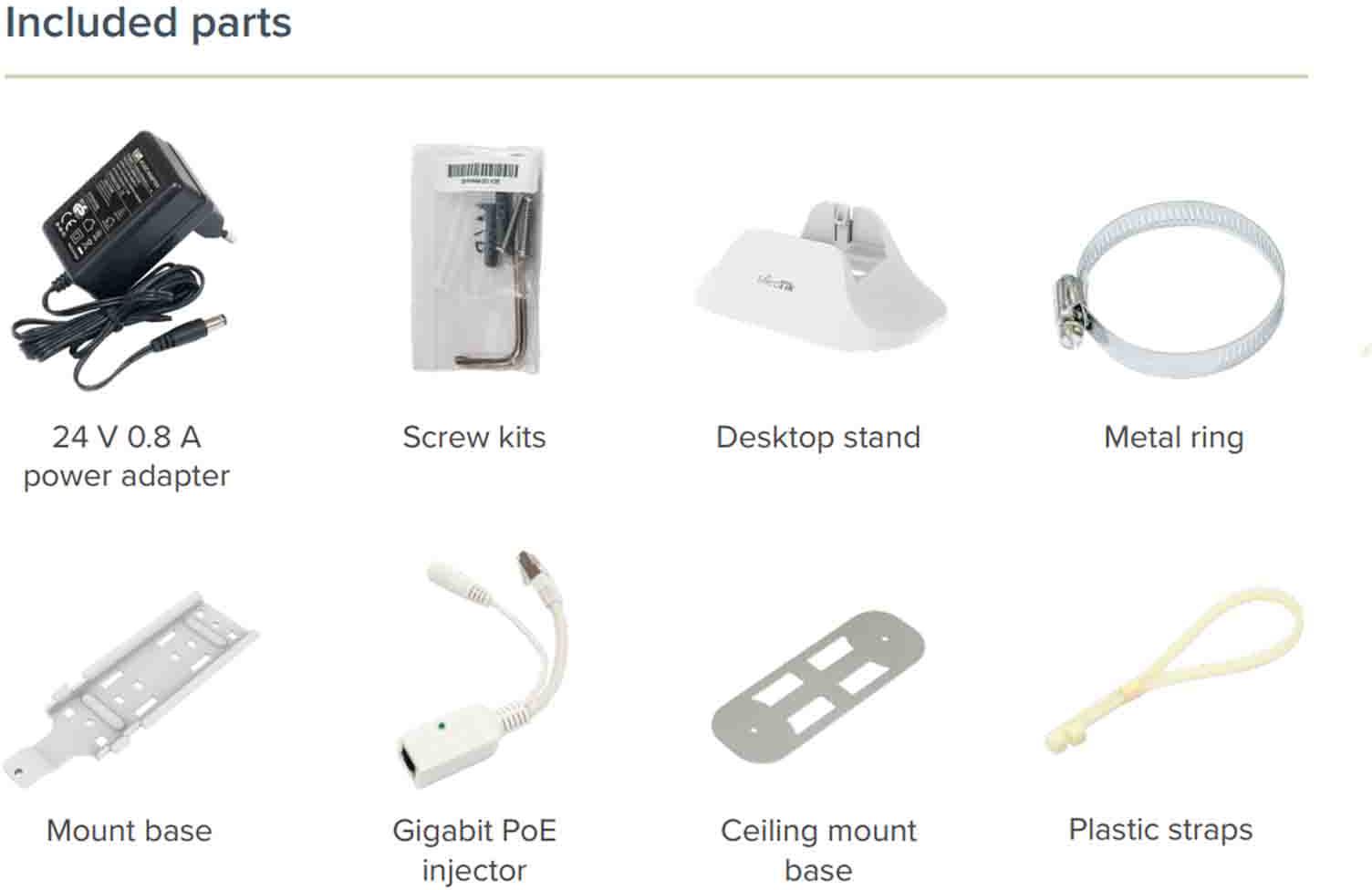 MikroTik wAP ac LTE komplekts ir piekļuves punkts, kas aprīkots ar 2 Gigabit Ethernet portiem and R11e-LTE karti.