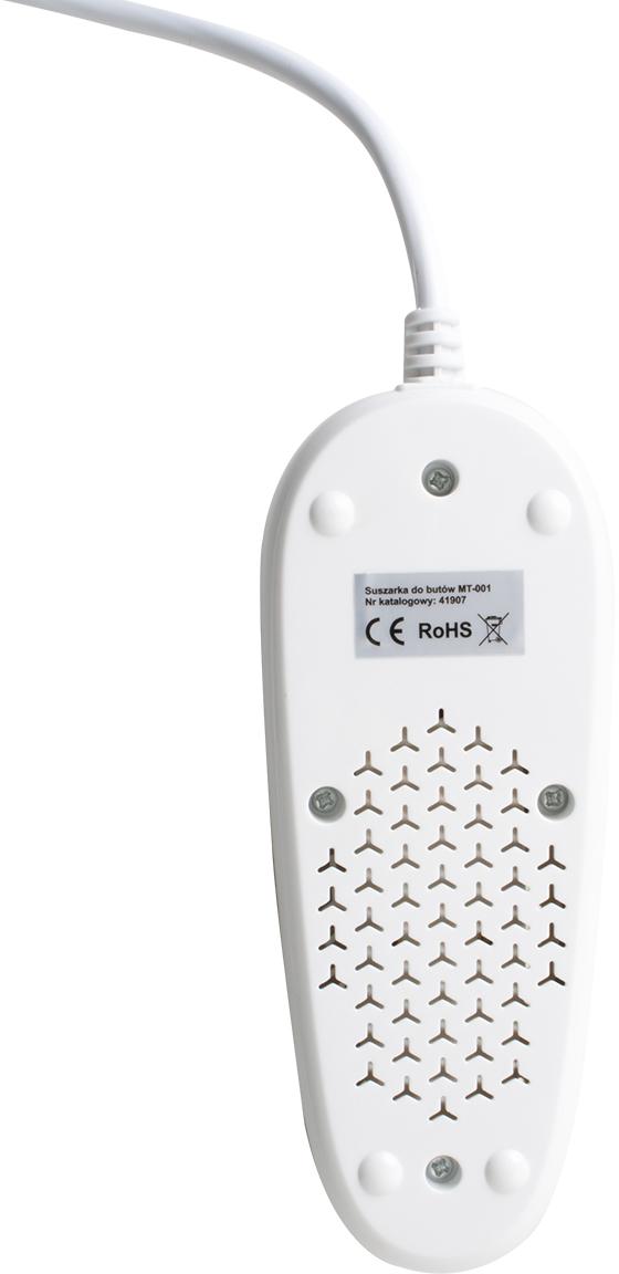 - Bardzo niski koszt użytkowania suszarki – pobór prądu suszarki do butów Miton MT-001 wynosi zaledwie 10W.