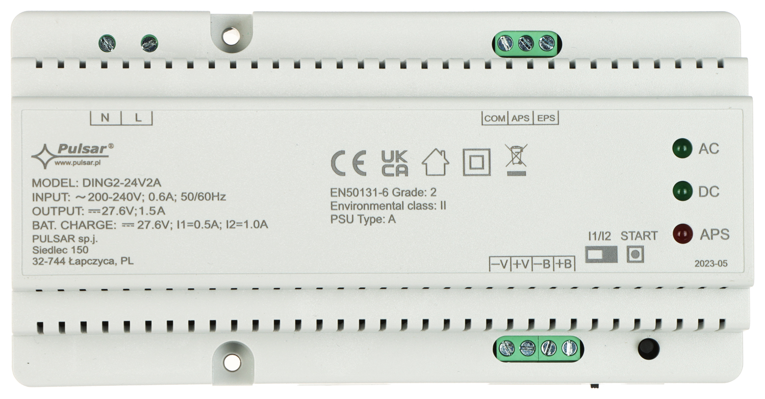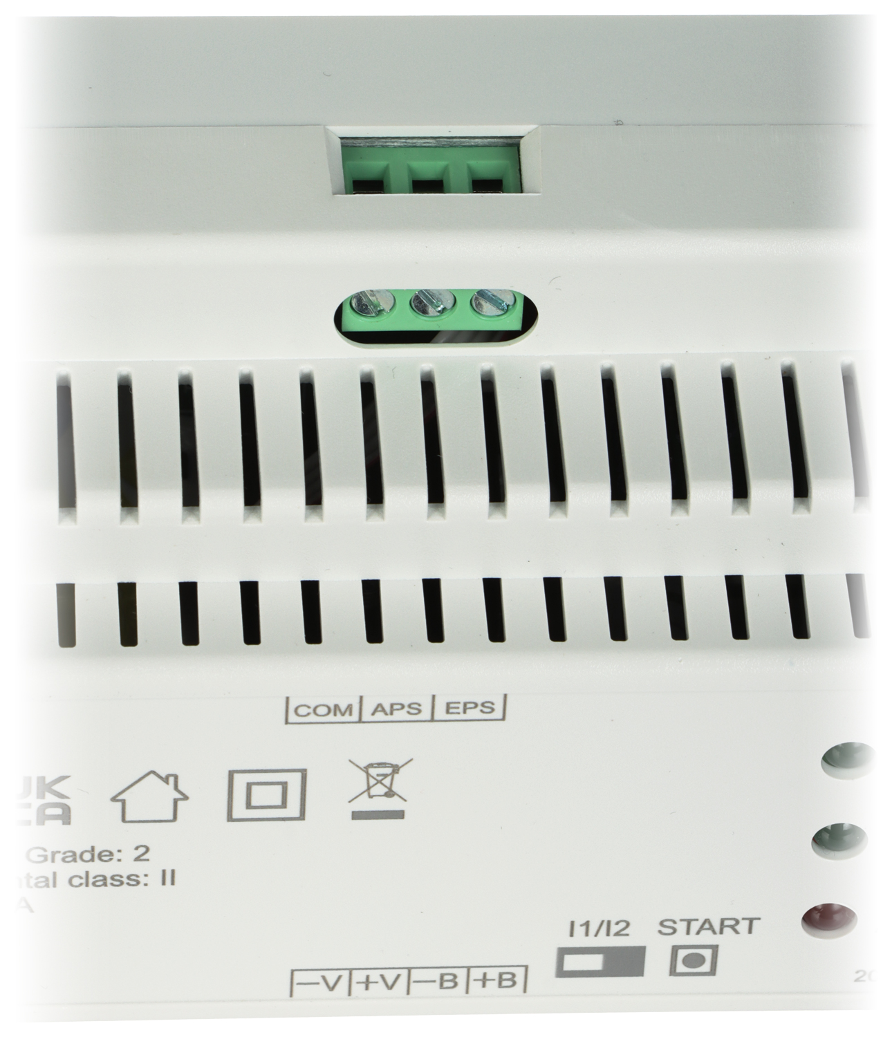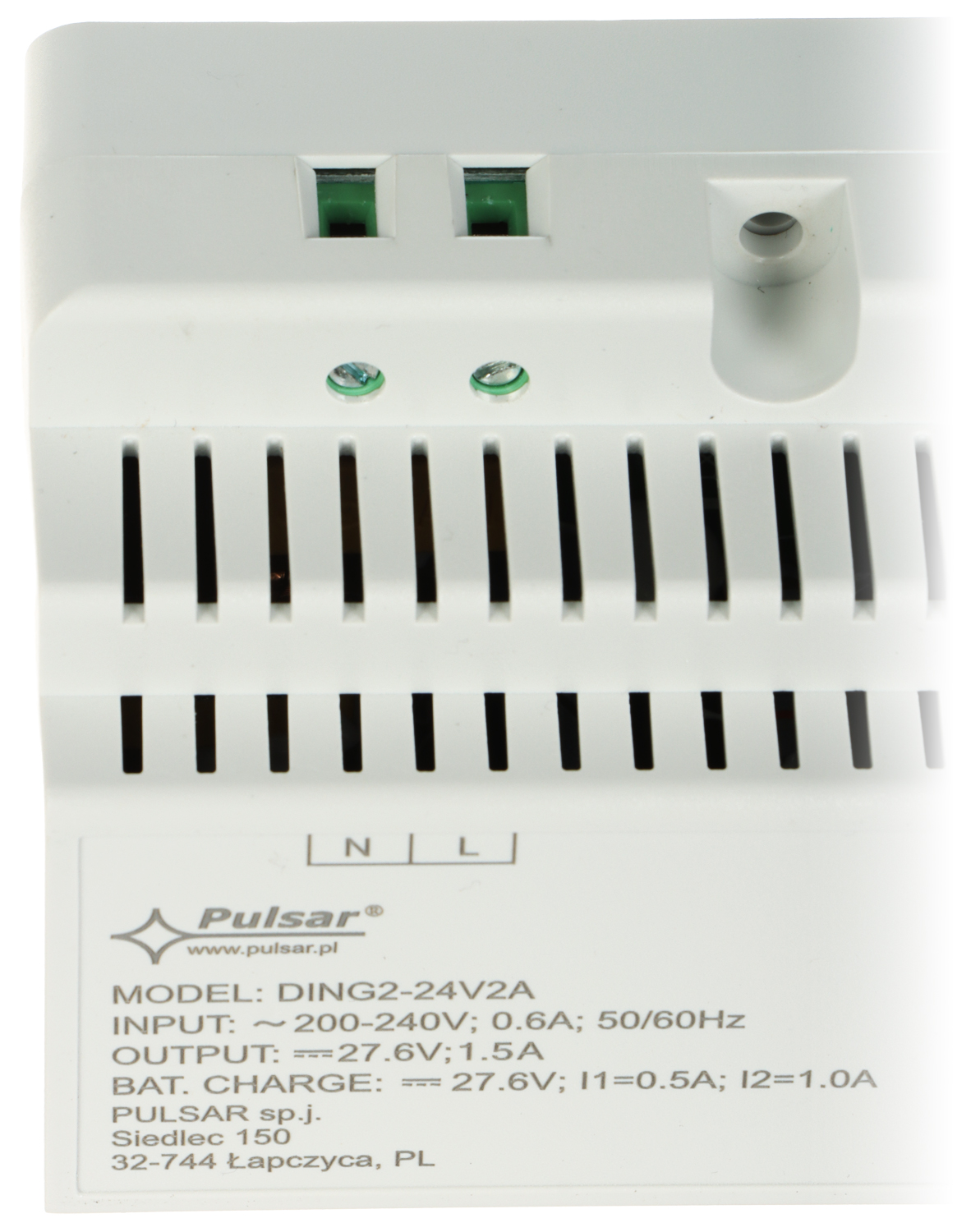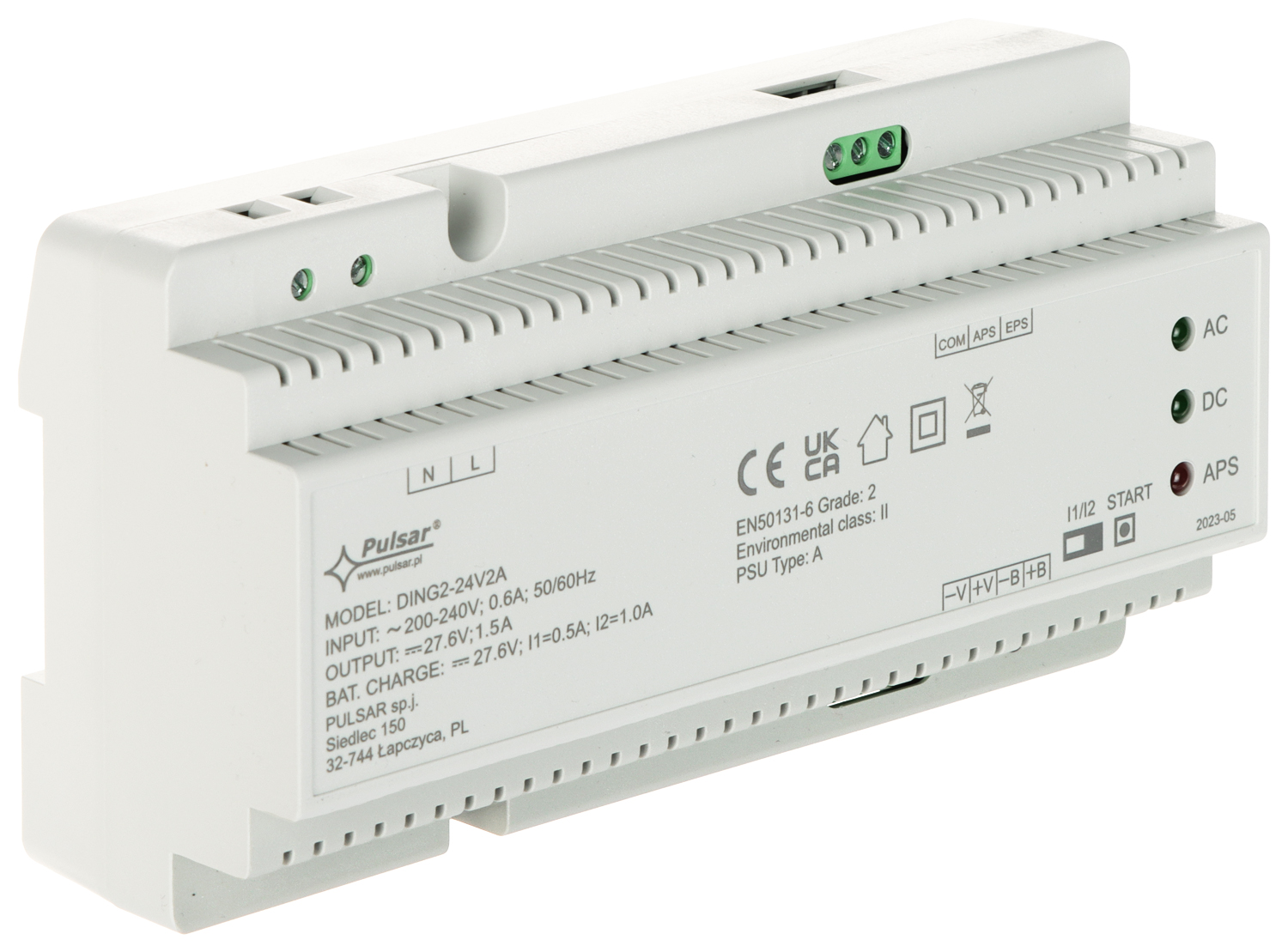 Input voltage: 200 … 240 V AC </span>;>Output voltage: 27.6 V DC </span>;>Output current (total): 2 A </span>;>Battery charging current: 0.5 A </span>;>Adapter operation control: Izeja EPS FLT – signalizē par AC barošanas avāriju, Izeja APS FLT – Akumulatora avārijas signalizācija </span>;>Selected characteristics: Grade 2 </span>;>Weight: 0.36 kg </span>;