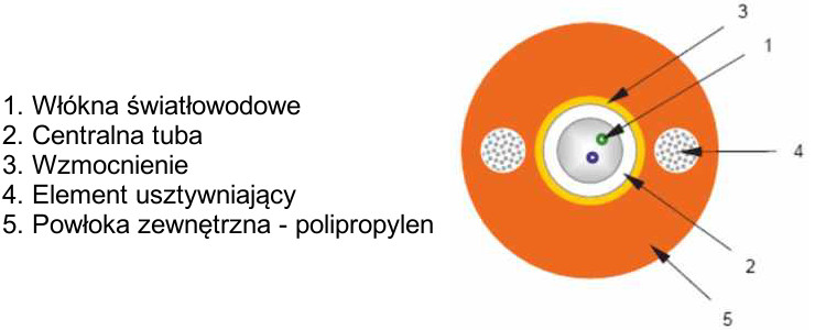 DAC cable (Direct Access Cable) is a very light dielectric cable with a central tube designed for direct burial in the ground. It has a very small outer diameter, which facilitates installation. Its design includes protection against longitudinal water ingress. It is resistant to compression and stretching. The stiffening element used in the outer sheath guarantees that the cable bends in one plane only.