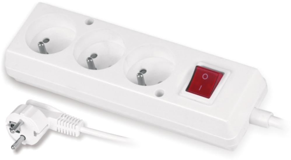 PAGARINĀTĀJS AR TRĪSŠĀRĀM IZKLĀTĀM AR SLĒDZI 3x2p+Z 10A 3m BALTS