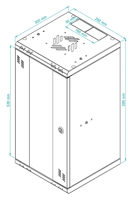 Internal width: 10 " </span>;>Internal height: 12 U </span>;>External width: 292 mm </span>;>External height: 596 mm </span>;>External depth: 300mm </span>;>Ventilation openings: 105 x 105 mm </span>;>Colour: Black </span>;>Weight: 5 kg </span>;