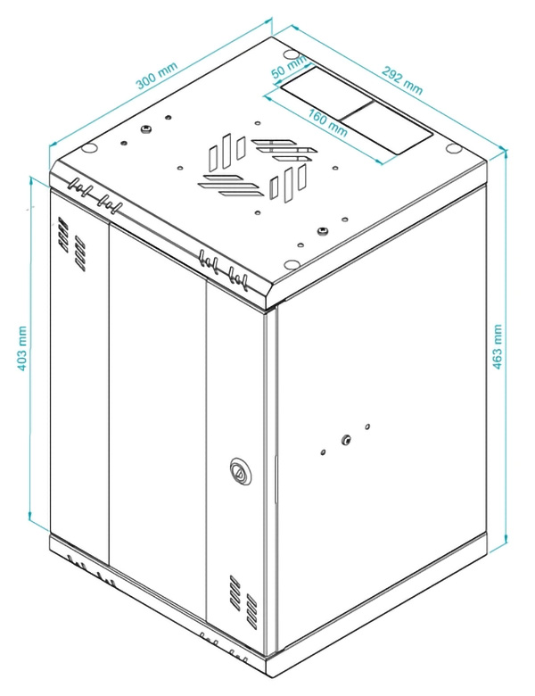 Internal width: 10 " </span>;>Internal height: 9 U </span>;>External width: 292 mm </span>;>External height: 463 mm </span>;>External depth: 300mm </span>;>Ventilation openings: 105 x 105 mm </span>;>Colour: Grey RAL7035 </span>;>Weight: 4.1 kg </span>;