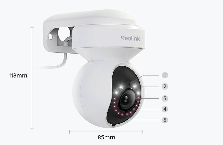 Reolink E sērijas E540 PTZ 5MP Wi-Fi LED IP kamera, balta