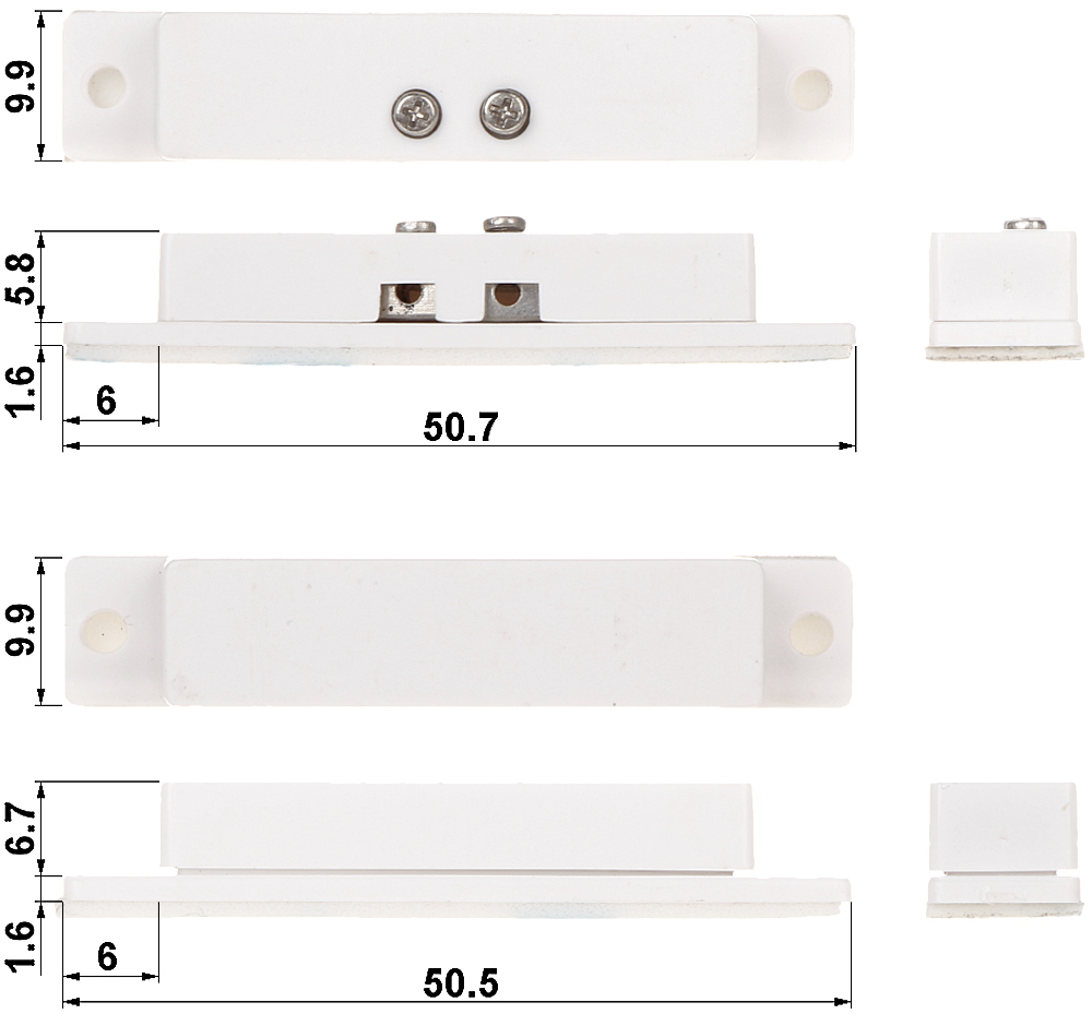 | Selected characteristics: | Plastmasa (ABS) Izeja NC – magnēts tuvu herkonam – neizraisa trauksmes signālu, kontakti noslēgti Savienotāji : skrūvējama plāksne Kabeļu izvadīšana : Gar garāko malu |