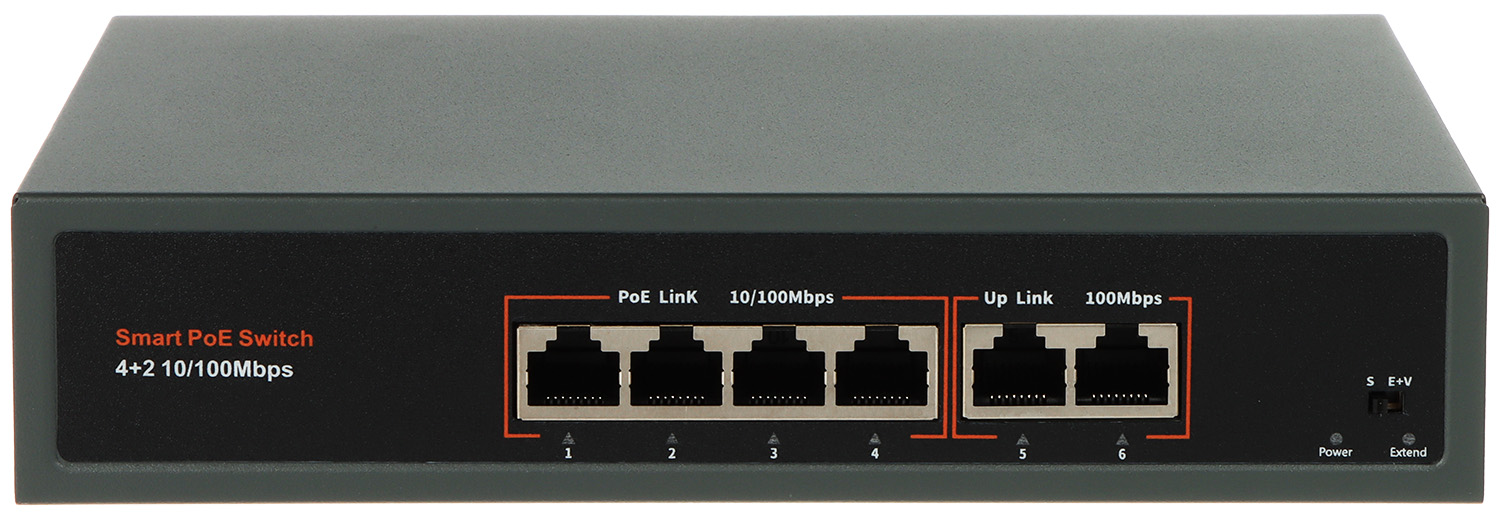 LAN ports: 4 x RJ45 ( 4 x PoE (802.3af/at) ), 2 x RJ45 - Uplink </span>;>Transmission speed: 10 / 100 Mbps : 4 x LAN & PoE ligzda, 10 / 100 Mbps : 2 x RJ45 (Uplink) ligzda </span>;>Maximum total power: 60W </span>;