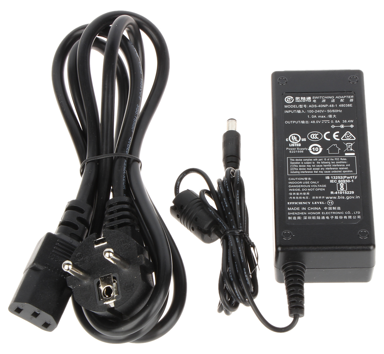 48V DC / 800 mA (komplektā strāvas adapteris)