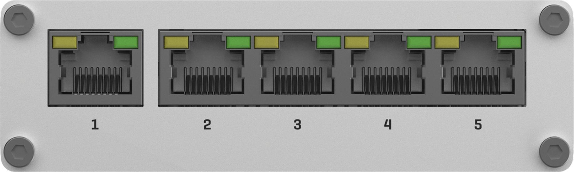 - 5 gigabitu Ethernet porti (5xGE) – nodrošina ātrus un efektīvus tīkla savienojumus.