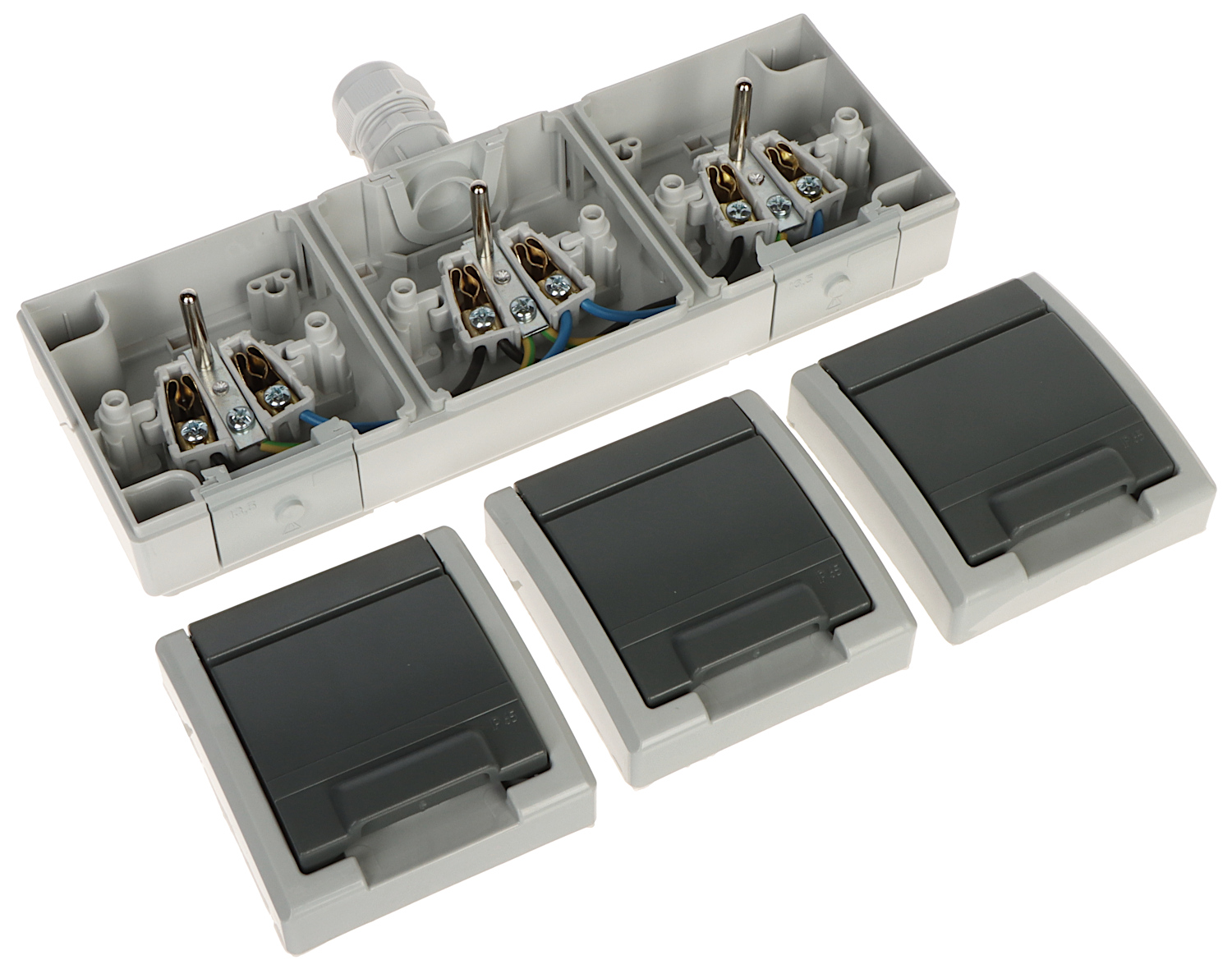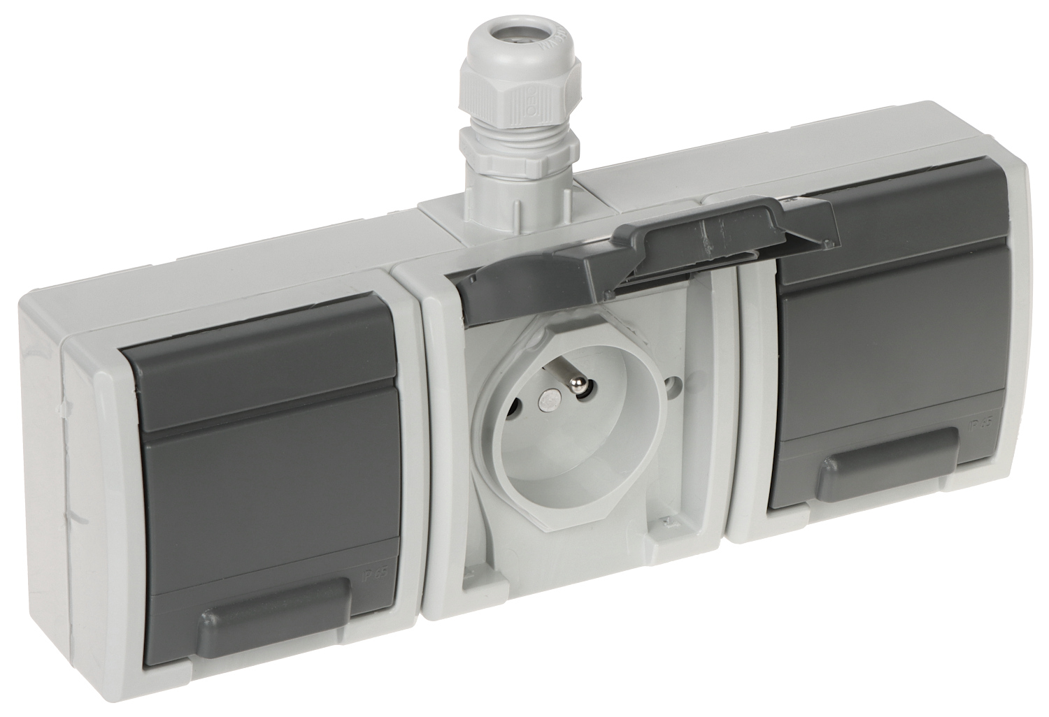 TRIPLE SURFACE SOCKET OUTLET AQUANT-G3/EPN 230 V AC 16 A IP65 Elektro-Plast