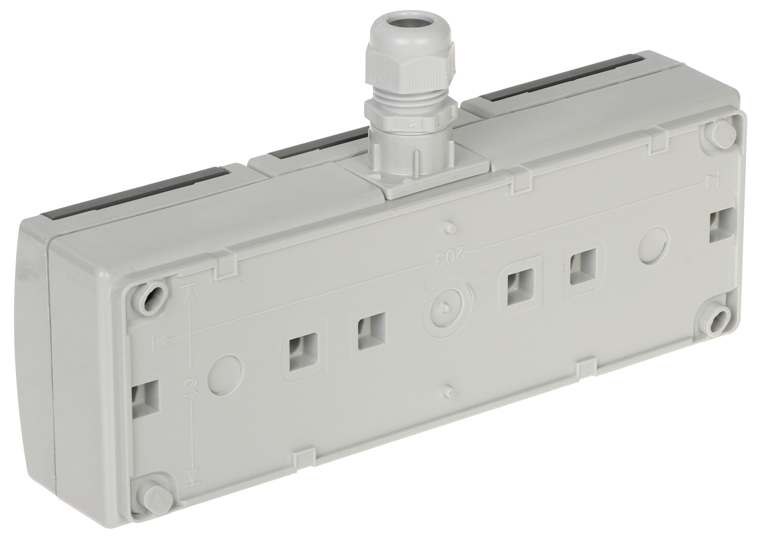 Rated voltage: 230V AC </span>;>Maximum load current: 16 A </span>;>Grounding</span>;>Cable terminals: screw plate </span>;>Socket type: 3 x CEE 7/5 </span>;>Cover</span>;>Protection class: IP65 </span>;