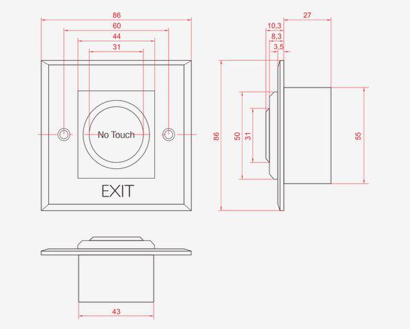 - Izmēri: 86 x 86 x 9 mm (ieplaka: 43 x 55 x 30 mm)