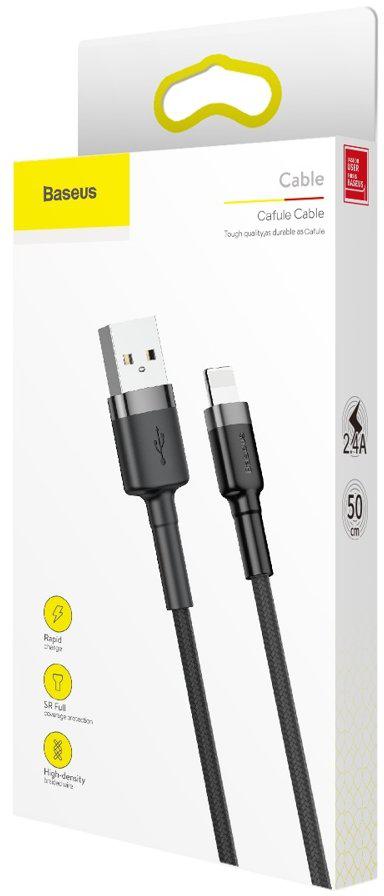 Baseus Cafule Cable nylonowy kabel USB / Lightning QC 3.0 2.4 A 0,5 m CALKLF-AG1 – najważniejsze cechy: