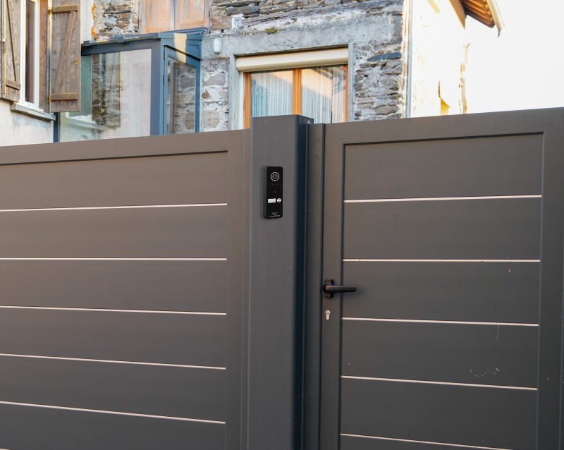 - The gate panel is equipped with a camera with 2MPx / 1080P resolution, which ensures high image quality. Additionally, the user can adjust the resolution settings to match the video signal to the existing system cable. Thanks to its compact design, which is no more than 5 cm wide, the panel can be easily installed on narrow metal fence posts. The 30º angle bracket allows you to precisely align the panel towards the entrance gate, which increases surveillance efficiency and provides better visibility of the entrance area.