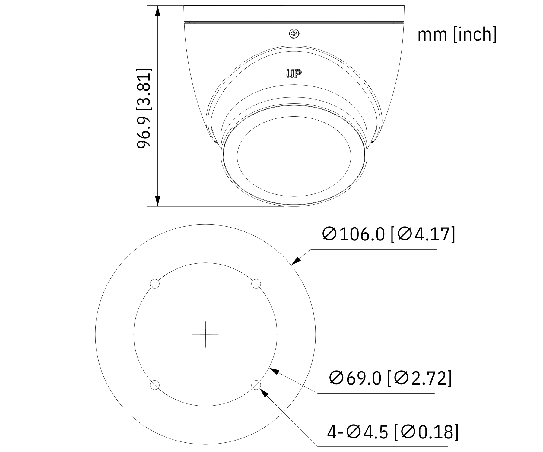 Resolutsioon: 3840x2160 </span>;>Nähtavusnurk: 106° </span>;>Infrapunavalgustuse tuvastusala: 40 meetrit </span>;>LED-valge valguse ulatus: 40 meetrit </span>;>Heli: Sisseehitatud mikrofon, heli taasesitus koaksiaalkaabli kaudu – ainult HD-CVI </span>;>Toiteallikas: 12 V alalisvool </span>;