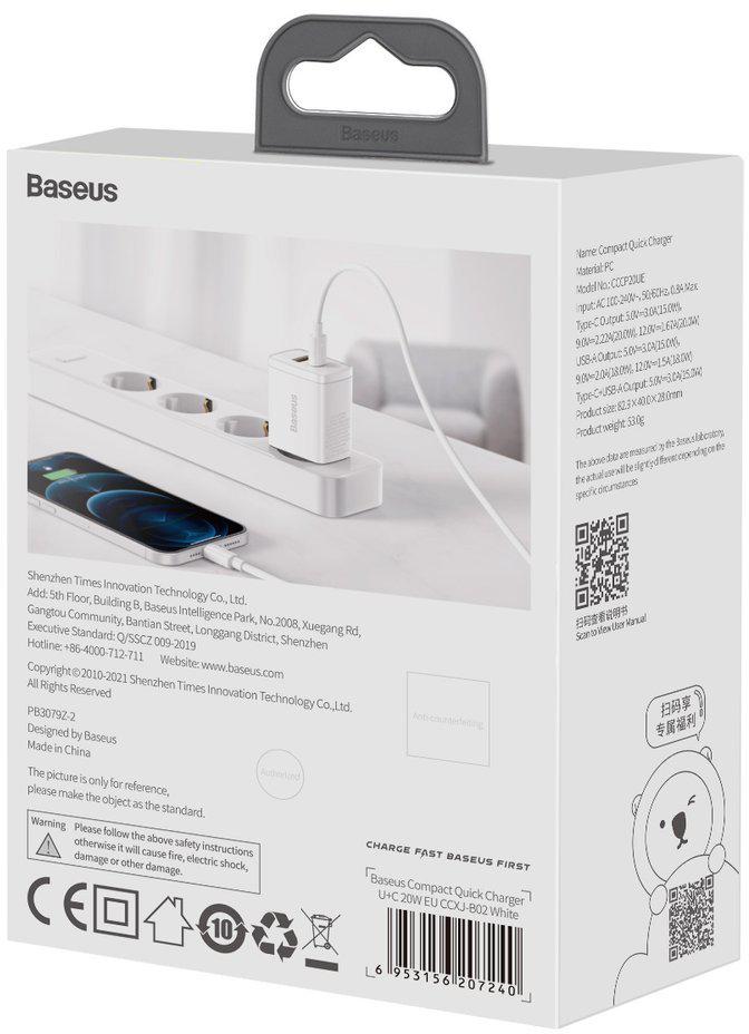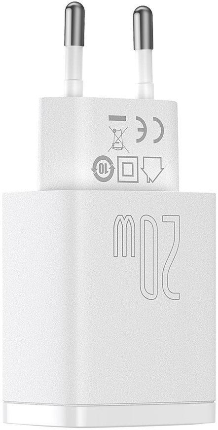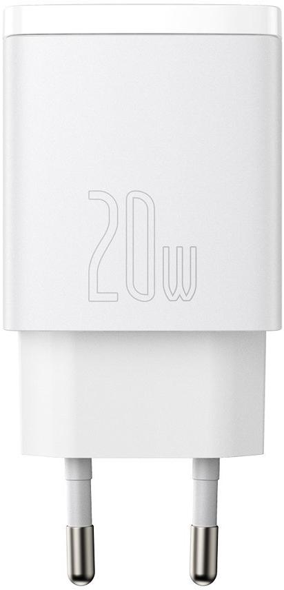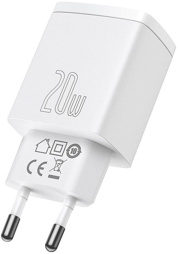Baseus kompaktne kiirlaadija CCXJ-B02 20W 1x USB-A 1x USB-C PD 3.0 QC 3.0 VALGE