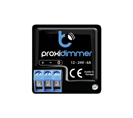 proxiDimmer ir ārkārtējs LED aptumšotājs/slēdzis, kas ļauj ieslēgt/izslēgt apgaismojumu un kontrolēt tā spilgtumu ar pieskārienu vai pieliekot tam roku