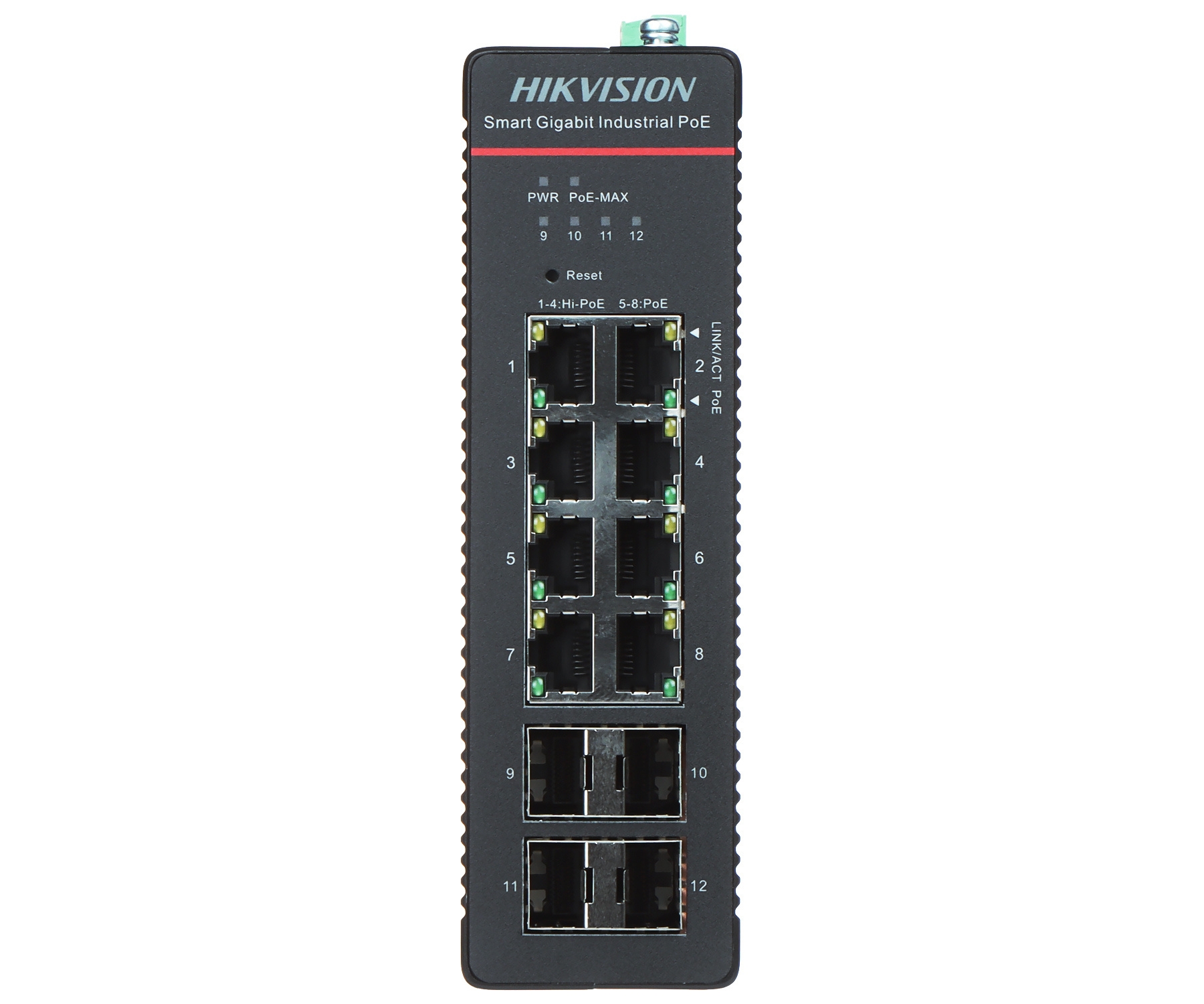 Power, Link/Act, PoE, PoE Max, 9 SFP, 10 SFP, 11 SFP, 12 SFP