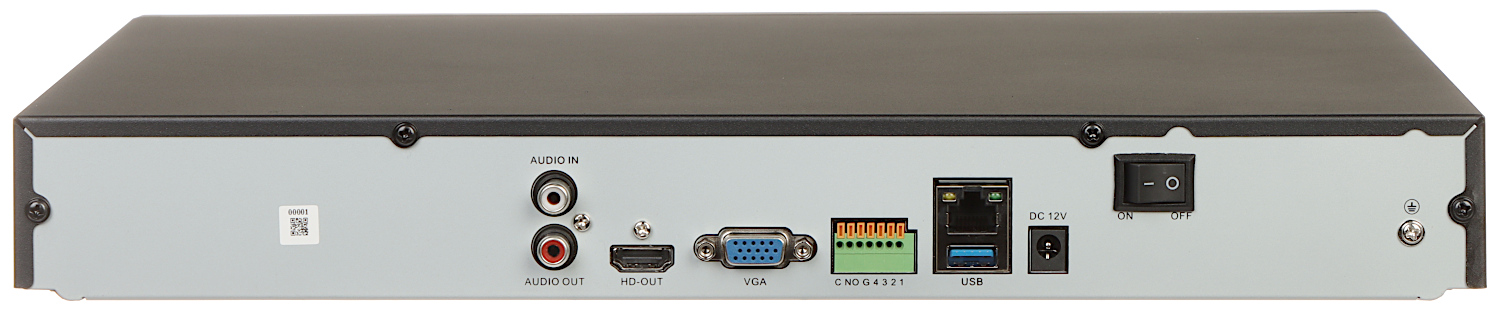 Toetatud resolutsioon: max 12 megapikslit - 4000 x 3000 pikslit </span>;>Heli tugi: 32 kanalit, vastab AAC standardile </span>;>Pildi tihendamise meetod: H.265+ </span>;>Toetatud kõvakettad: 2 x 10 TB SATA </span>;>Häire sisendid/väljundid: 4 / 1 </span>;