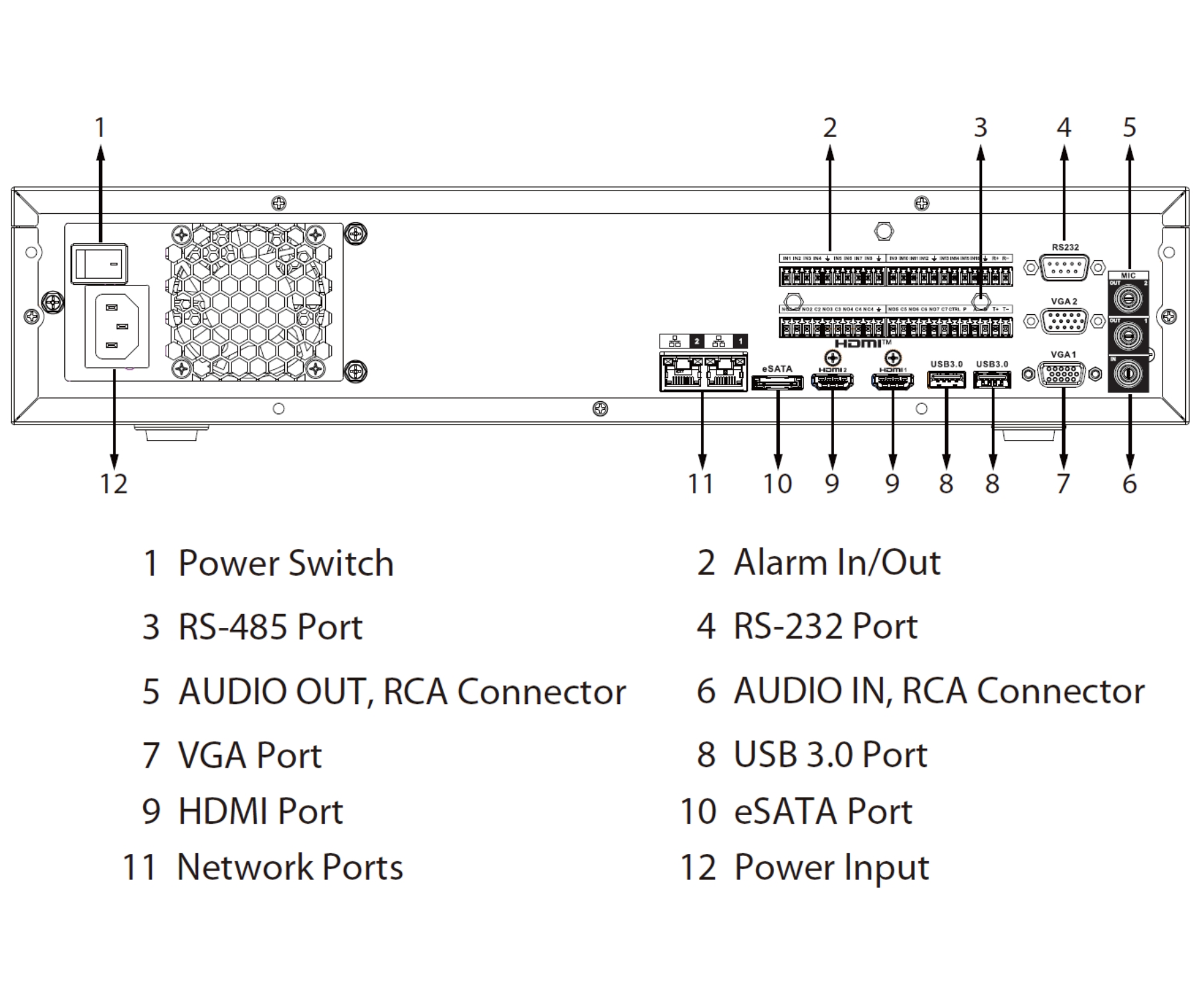 Seeria: WizSense NVR5 EI2 </span>;>Toetatud resolutsioon: max. 32 Mpx </span>;>Toetatud kõvakettad: 8 × 20 TB SATA + 1 × eSATA </span>;>Videoväljundid: 2 tk HDMI 8K, 2 tk VGA </span>;>Heli sisendid/väljundid: 1 / 2 </span>;>Pildi tihendamise meetod: Smart H.265+ / Smart H.264+ </span>;>Häire sisendid/väljundid: 16 / 8 </span>;