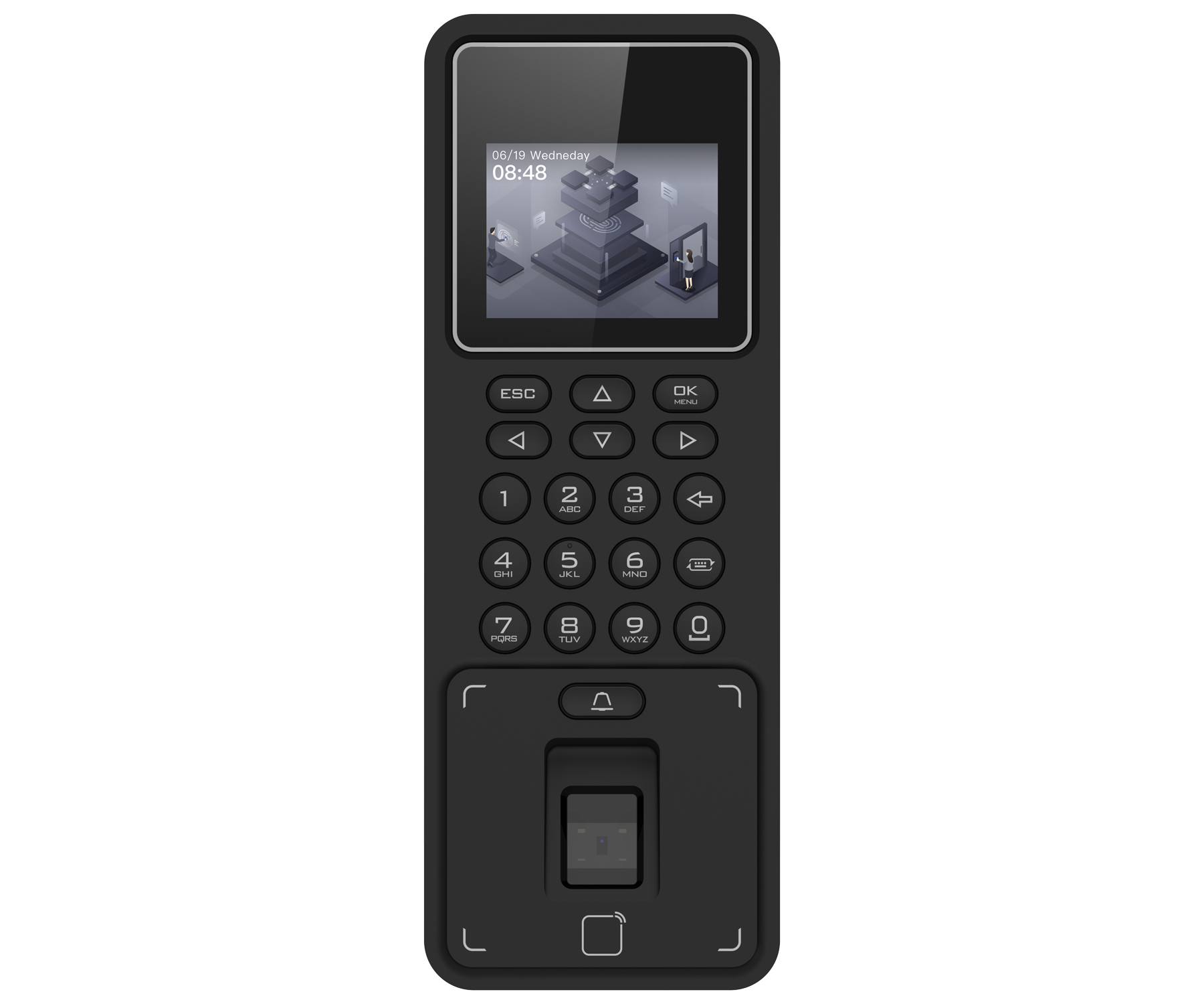 Ühildub kaartidega: Unikaalne EM 125kHz </span>;>Kaardi lugemisulatus: 0 … 5 cm </span>;>Sisseehitatud sõrmejäljelugeja</span>;>QR kodu lasītājs</span>;>Sisseehitatud klaviatuur</span>;>Suhtlus: Wiegand 34/26, RS-485, Ethernet 10/100 Mb/s ligzda, Modulis Wi-Fi </span>;>Valitud funktsioonid: Releja izeju skaits : 1 gab. NO/NC, Notikumu 100 000 vēsture, Saderīgs ar 3000 pirkstu nospiedumiem, Identifikācija: pirksta nospiedums un/vai RFID karte un/vai PIN kods, </span>;>Keha: Plastik </span>;
