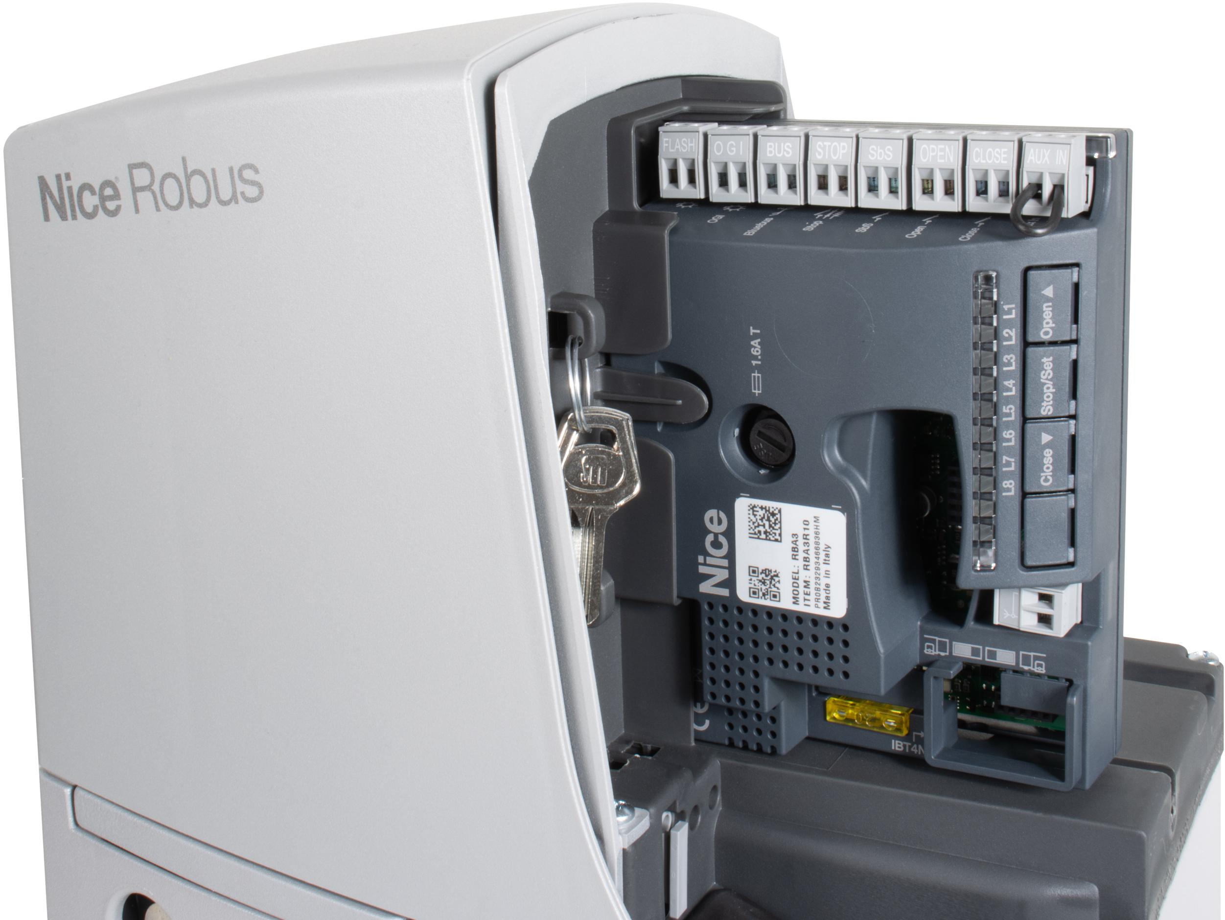 NICE Robus1000 izpildmehānisms ir paredzēts bīdāmo vārtu automatizācijai ar augstu lietošanas intensitāti – līdz 150 cikliem dienā ar maksimālo vērtnes svaru līdz 1000 kg.
